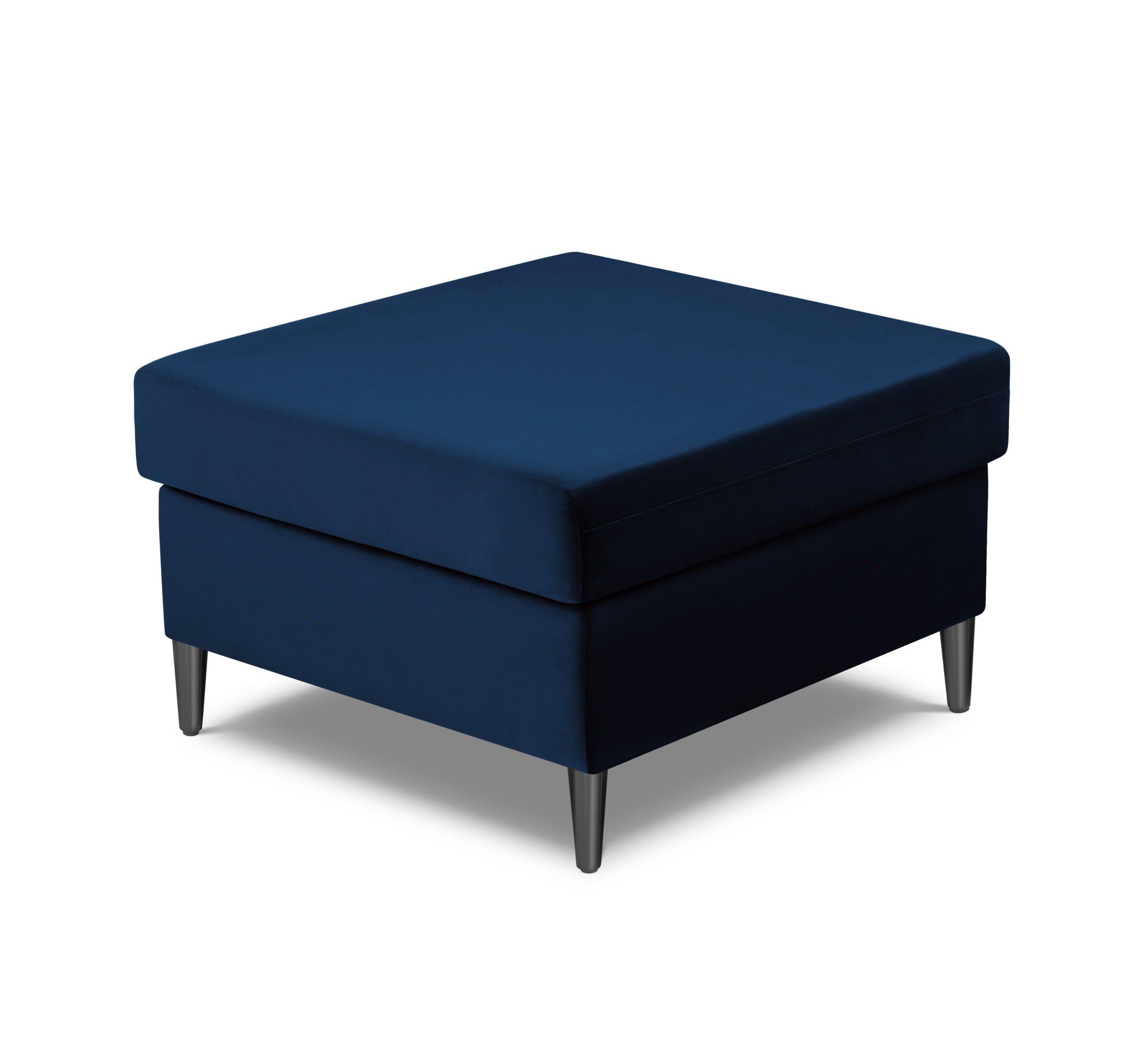Pouf samtig Kyoto Blue mit einer schwarzen Basis