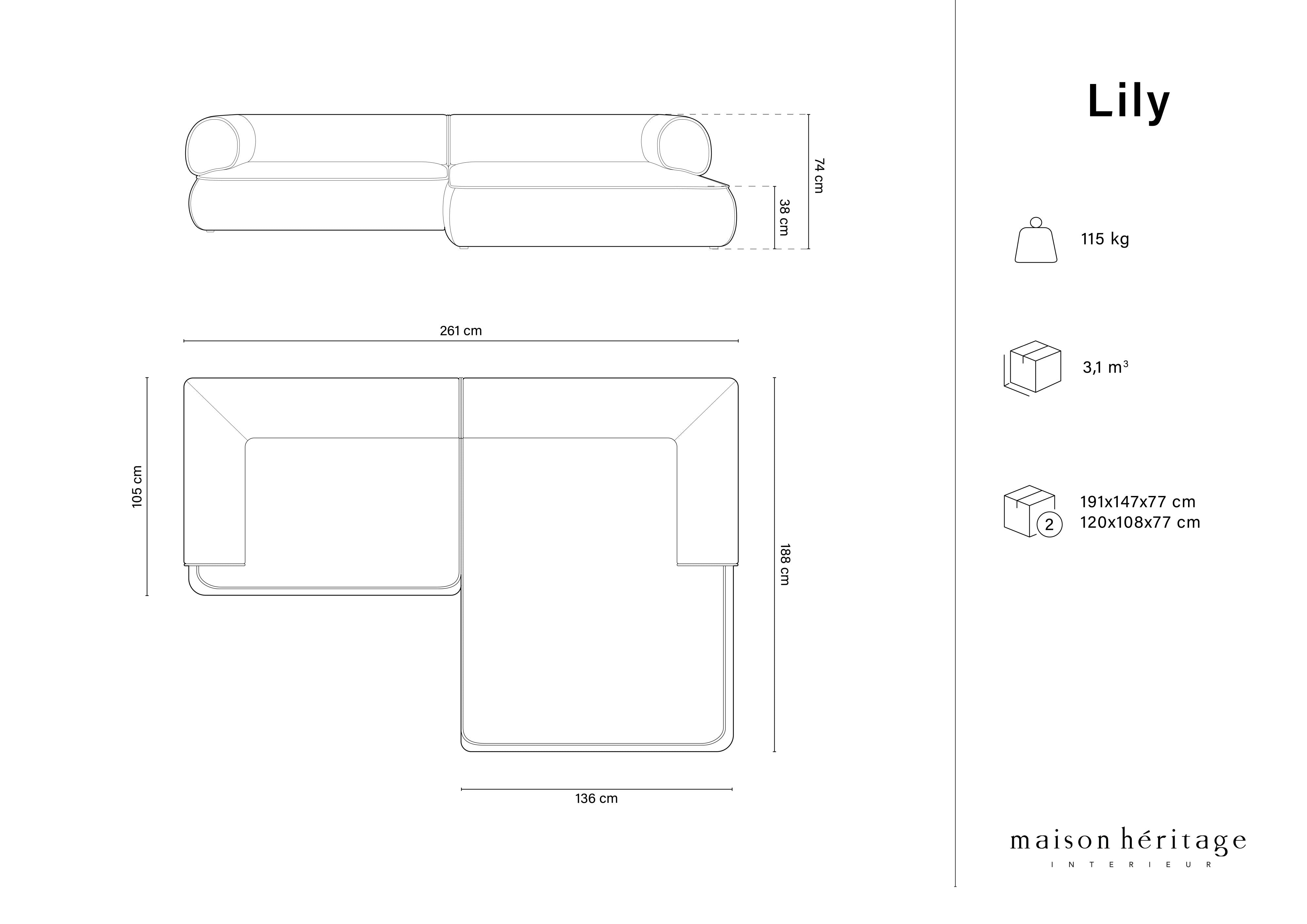 Die tiefen Sitze sind elastisch und sehr komfortabel. Delikate Quilts und Nähte betonen die klassische Natur des Projekts. Dank der niedrigen und ausbreitenden Figur Ecke Lily wird ein wenig Gemütlichkeit und Wärme in den Innenraum einführen. Die Kollektion umfasst verschiedene Kombinationen von Sofas und Ecken sowie Chaiselong und Large Pouf, dank der Sie ein einzigartiges Dekor schaffen können.