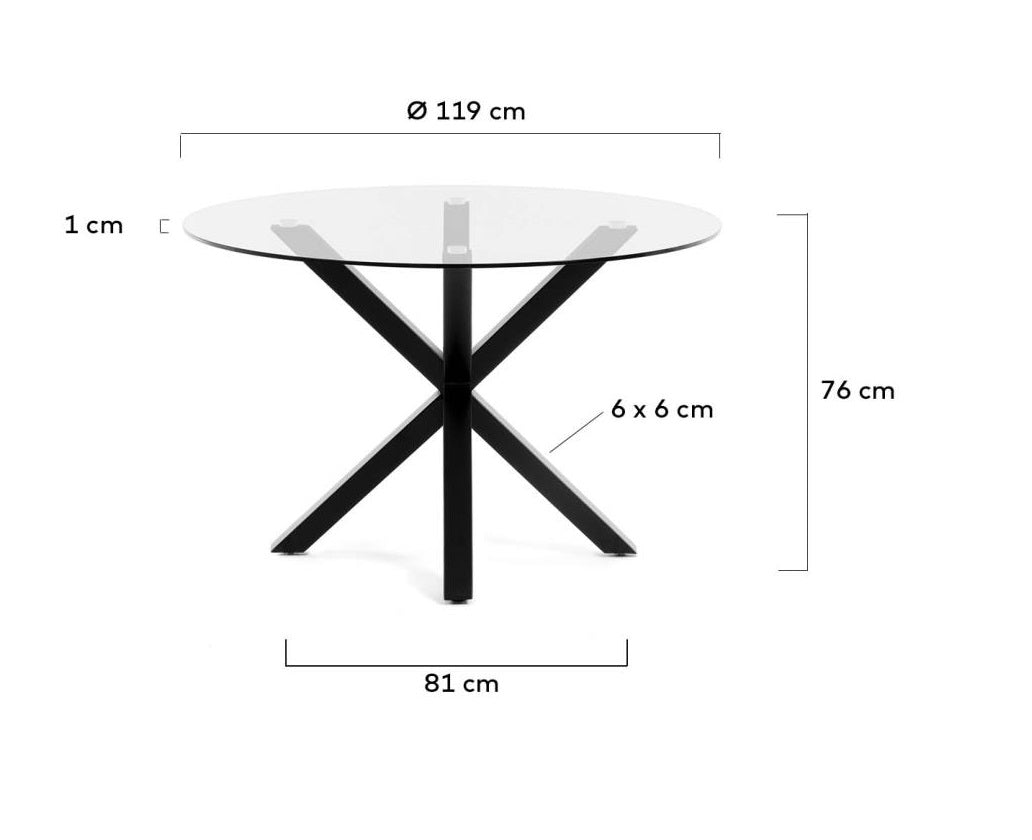 Runder Tisch Argo mit einem Glasoberteil und einer schwarzen Basis ist eine einzigartige Kombination aus Eleganz, Modernität und Funktionalität. Seine einzigartige Basis mit Kreuzungsstahlbeinen sorgt für die Stabilität und verleiht gleichzeitig den gesamten raffinierten Charakter. Dank des matten schwarzen Finish werden die Beine zu einem subtilen Akzent, der sich perfekt in den Rest des Innenraums einfügt.