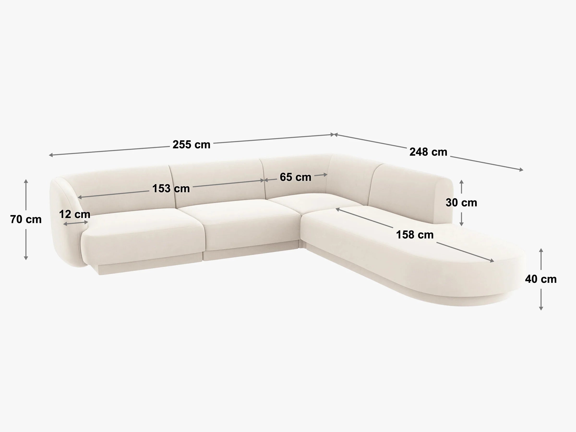 Narożnik aksamitny prawostronny 4-osobowy JODIE butelkowa zieleń Micadoni    Eye on Design