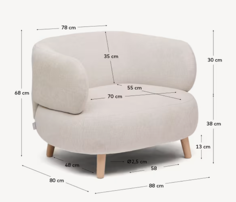 LUISA Perlmutt-Chenille-Sessel mit Gestell aus massiver Buche
