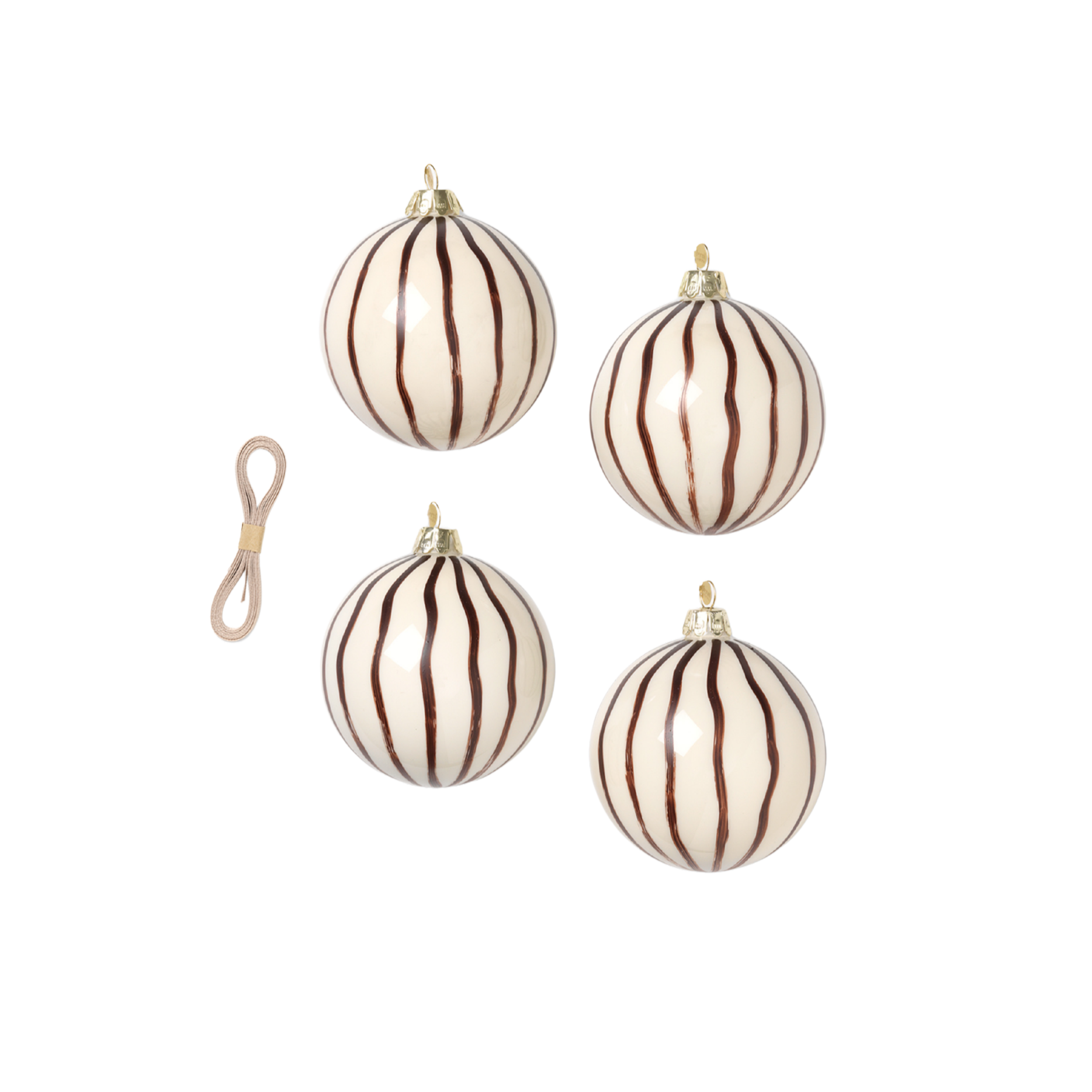 Zestaw bombek na choinkę LINES kremowy z brązowym