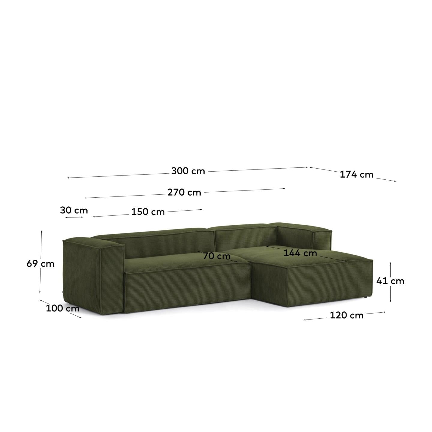 Narożnik 3-osobowy BLOK zielony sztruks La Forma    Eye on Design