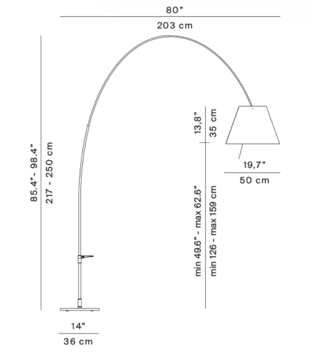 Stehlampe Grande Costanza ist eine vergrößerte Version klasycznej lampy Costanza, entworfen von Paolo Rizzatto für Luceplan. Die Tradition mit einem modernen Ansatz zur Beleuchtung verbindet die Leichtigkeit und Eleganz des ursprünglichen Projekts und passt sich an größere Räume an. Die Höhe des Lampenschirms kann dank des Teleskoparms im Bereich von 175 bis 235 cm eingestellt werden, sodass Sie passen können Lampen Für verschiedene Innenvereinbarungen.