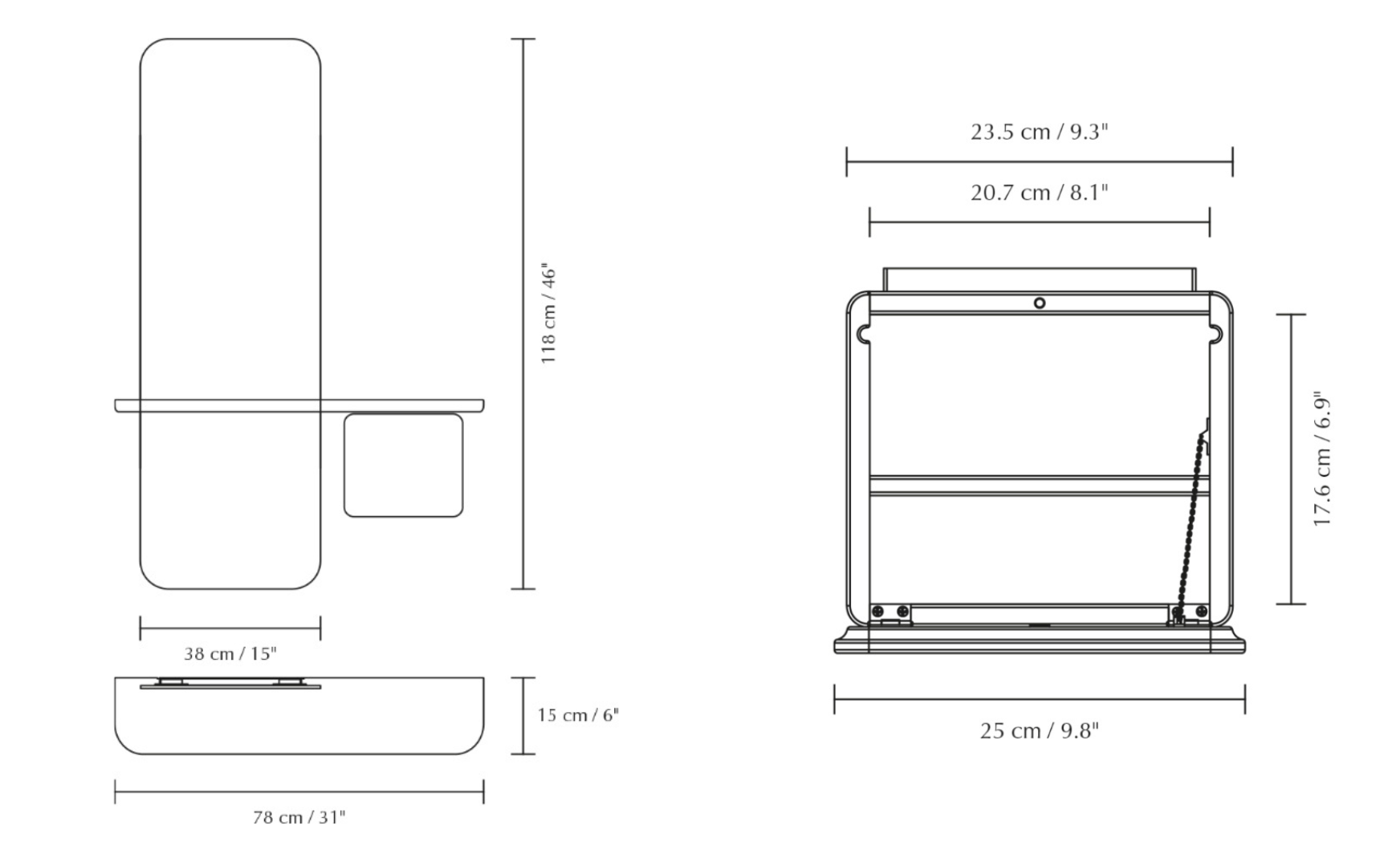 Vielen Dank an die richtige Größe Spiegel Es bietet Reflexion entlang seiner gesamten Länge, mit der Sie sich perfekt vorbereiten können, bevor Sie das Haus verlassen. Darüber hinaus ist der Spiegel mit einem Regal und einem kleinen Schrank mit praktischem Spiegel und Lederschalen ausgestattet - eine ideale Lösung für die Aufbewahrung alltäglicher Objekte wie Schlüssel, Kosmetik, Sonnenbrille und Ersatzmünzen.