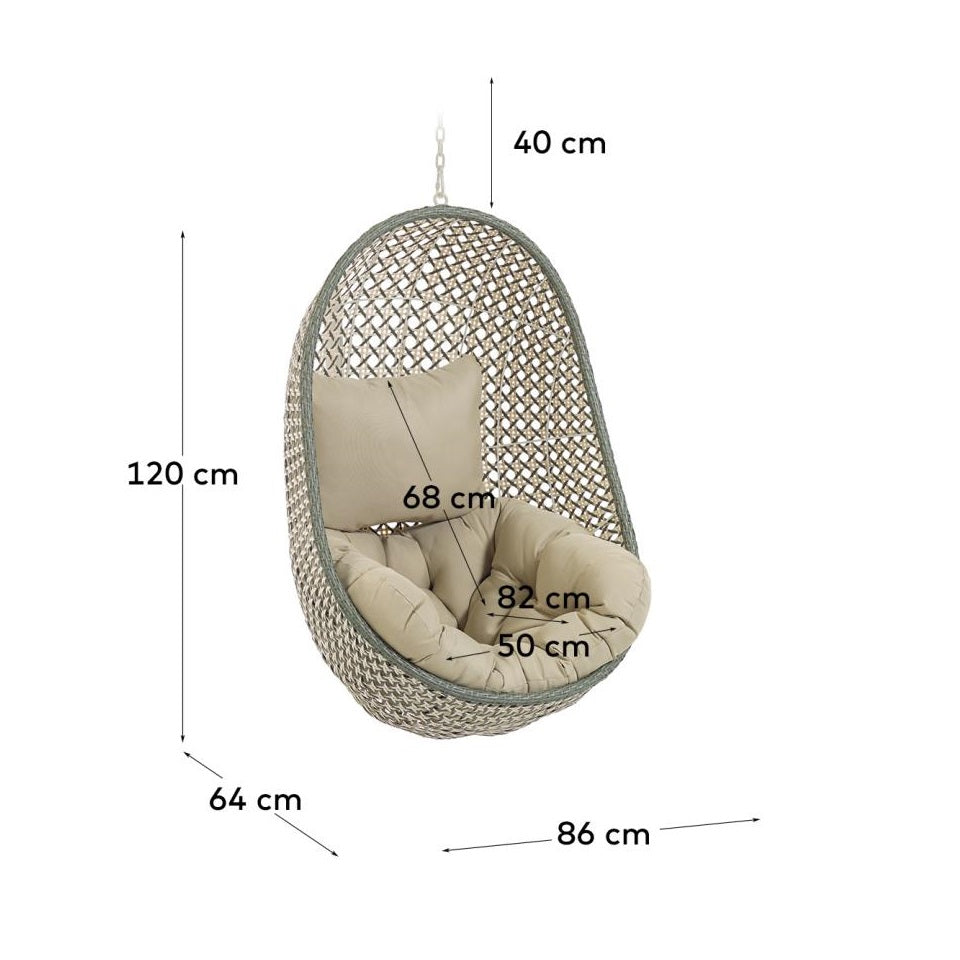 Hängenden Sessel CIRA ist ein perfektes Element des Innenarchitektur, das jedem Haus einen exotischen Akzent verleiht. Dank dessen können Sie sich in der frischen Luft entspannen und eine Atmosphäre der Urlaubsruhe bequem in Ihrem eigenen Garten oder Ihrer eigenen Terrasse schaffen. Das Design des CIRA -Stuhls kombiniert Funktionen mit Ästhetik und bietet nicht nur Komfort, sondern auch ein attraktives Erscheinungsbild.