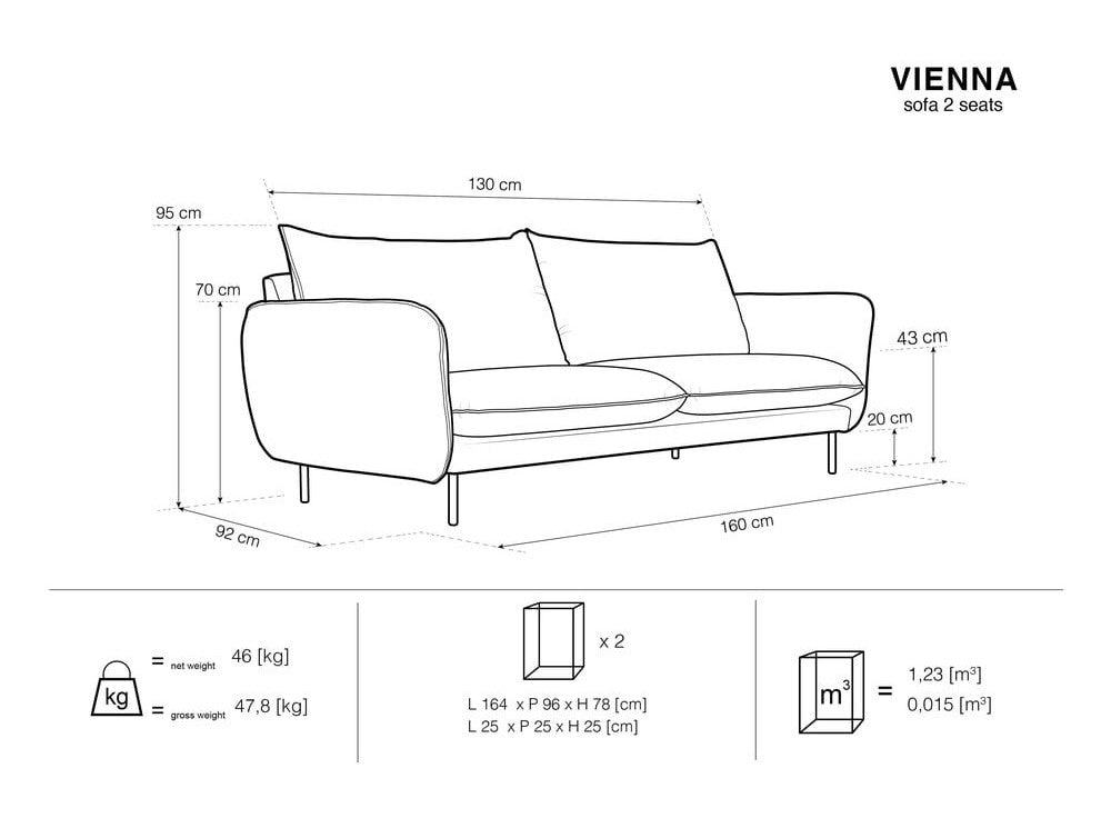 Sofę Vienna wyróżniają piękne proporcje i harmonijne kształty. Sofa do salonu jest nie tylko wygodna, ale też wprowadzi do wnętrza nutę paryskiego szyku i elegancji. Subtelny kształt i miękkie siedzisko zapewnią niezwykły komfort użytkowania. Metalowe nogi nadają całej formie lekkości.