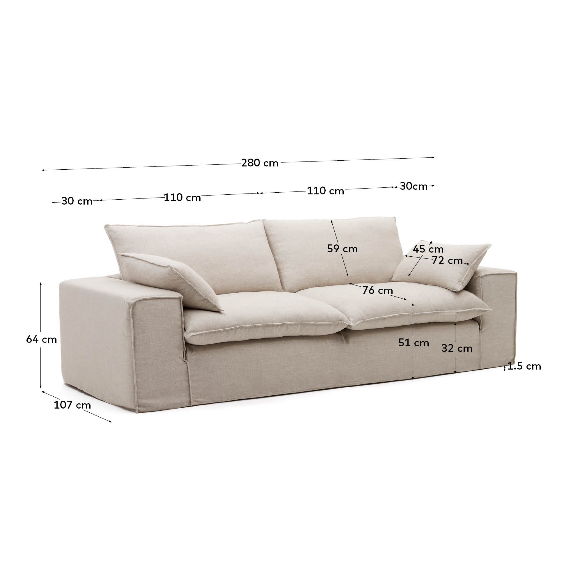 3-Sitzer-Sofa mit abnehmbarem Aarela Beige Cover