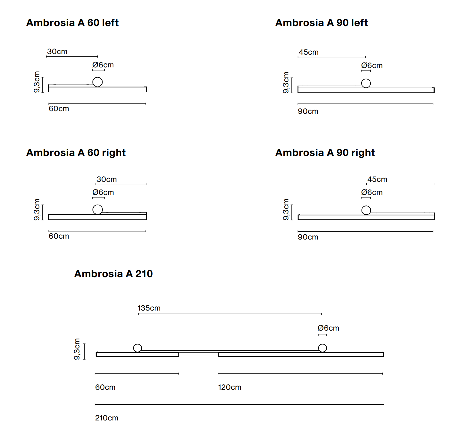 Erhältlich in drei Längen - 60, 90 und 210 cm - können horizontal oder vertikal montiert werden. 24 V LED SMD ist bei drei warmen Farbtemperaturen erhältlich, 2200 K, 2700 K und 3000 K, wodurch Sie die Intensität einstellen können.