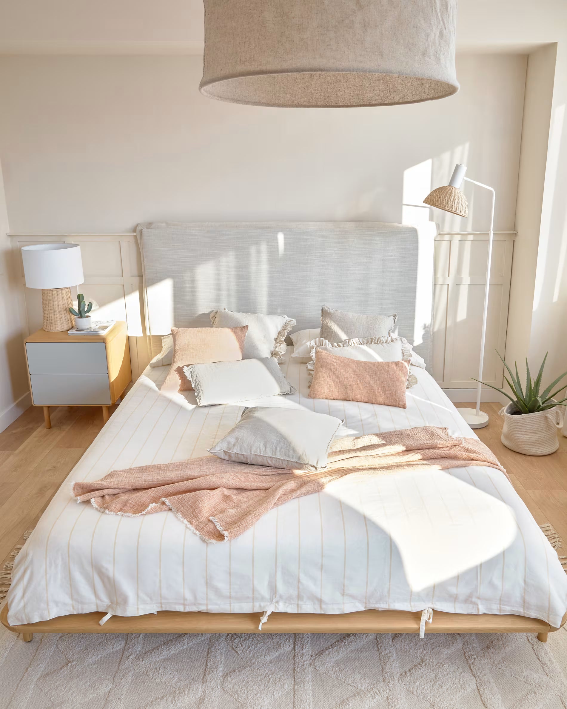 Nachttisch ANIELLE hellgrau mit Holz