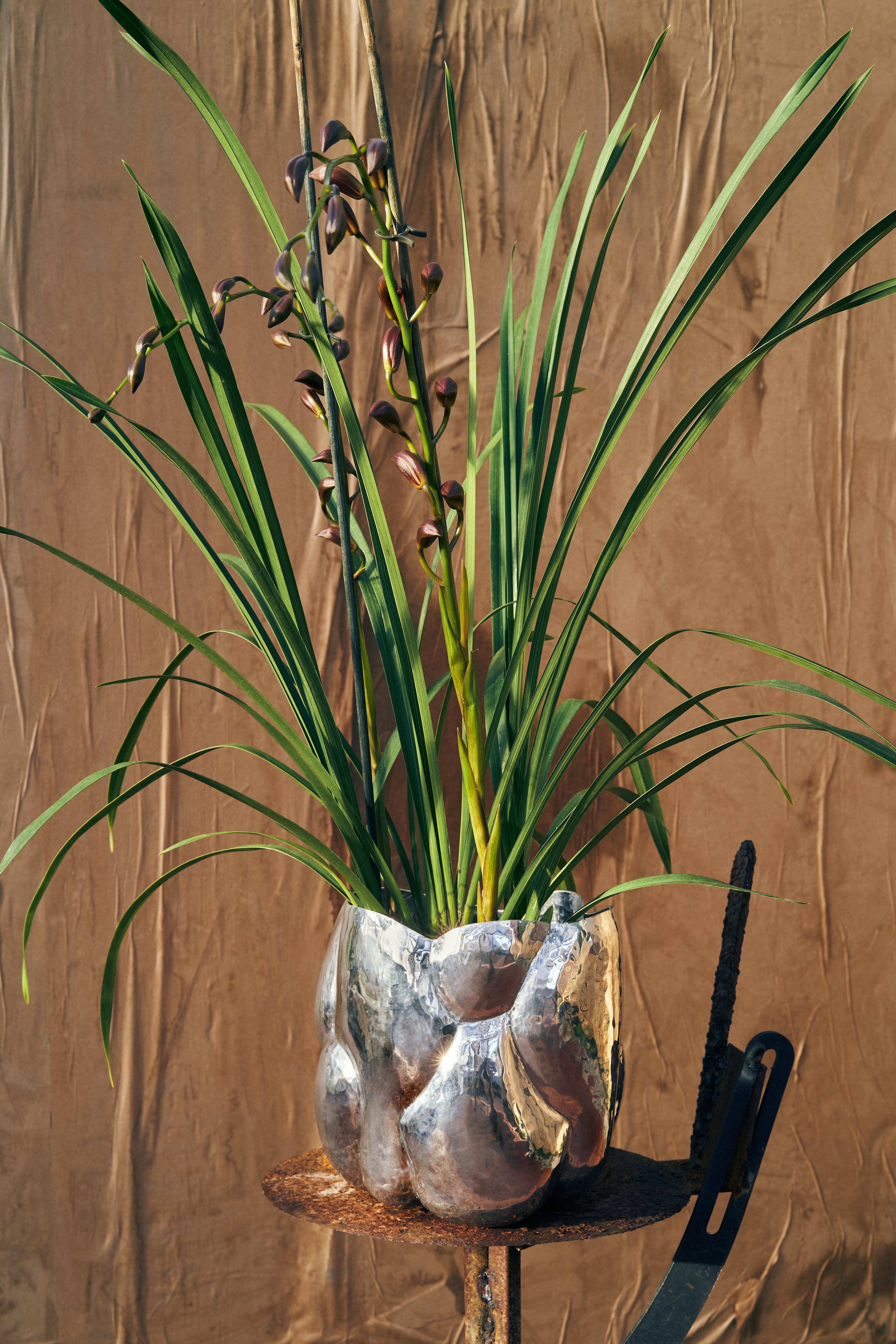 Wolke ist eine Skulptural Vase Hergestellt aus hochpoliertem Aluminium mit einem Spiegelfinish. Jede Kopie wird manuell von qualifizierten Handwerkern in Indien erstellt, dank jeder, die alle einzigartige Funktionen haben. Hammerspuren, subtile Deformationen und empfindliche Schweißnähte betonen die manuelle Leistung und verleihen ihm einen künstlerischen Charakter.