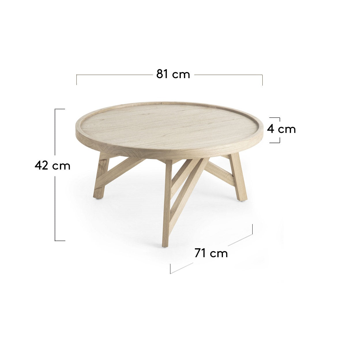 Couchtisch Leada ist eine Kombination aus Funktionalität, Eleganz und natürlicher Schönheit, wodurch es zum Mittelpunkt Ihres Wohnzimmers wird. Durch die Wahl von Mindi Wood gewinnen Sie nicht nur Haltbarkeit, sondern auch einen einzigartigen Charme, der dem Tisch einen rustikalen Charakter verleiht.