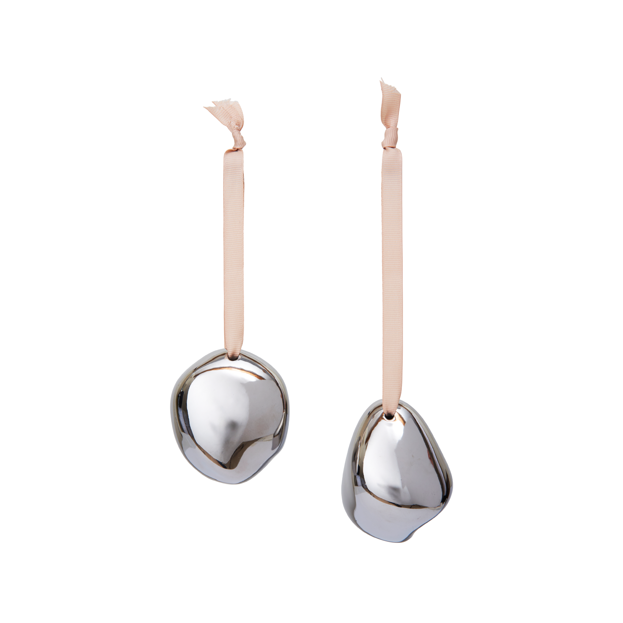 Dekoration Bellure in Silber ist eine raffinierte Kombination aus modernem Design und natürlicher Inspiration. Ihre glatte, organische Silhouette, inspiriert von den Formen von Flusssteinen, bringt Harmonie, Ruhe und zeitlose Eleganz in Ihr Zuhause. Der subtile Glanz der glasierten Oberfläche reflektiert das Licht wunderschön und verleiht der Dekoration einen edlen Charakter, während sie ihre skulpturale Einfachheit betont. Ob neben dem Weihnachtsbaum, auf der Kommode oder dem Fensterbrett platziert, wird sie zu einem einzigartigen Gestaltungselement, das die Blicke auf sich zieht und dem Raum einen künstlerischen Ausdruck verleiht.