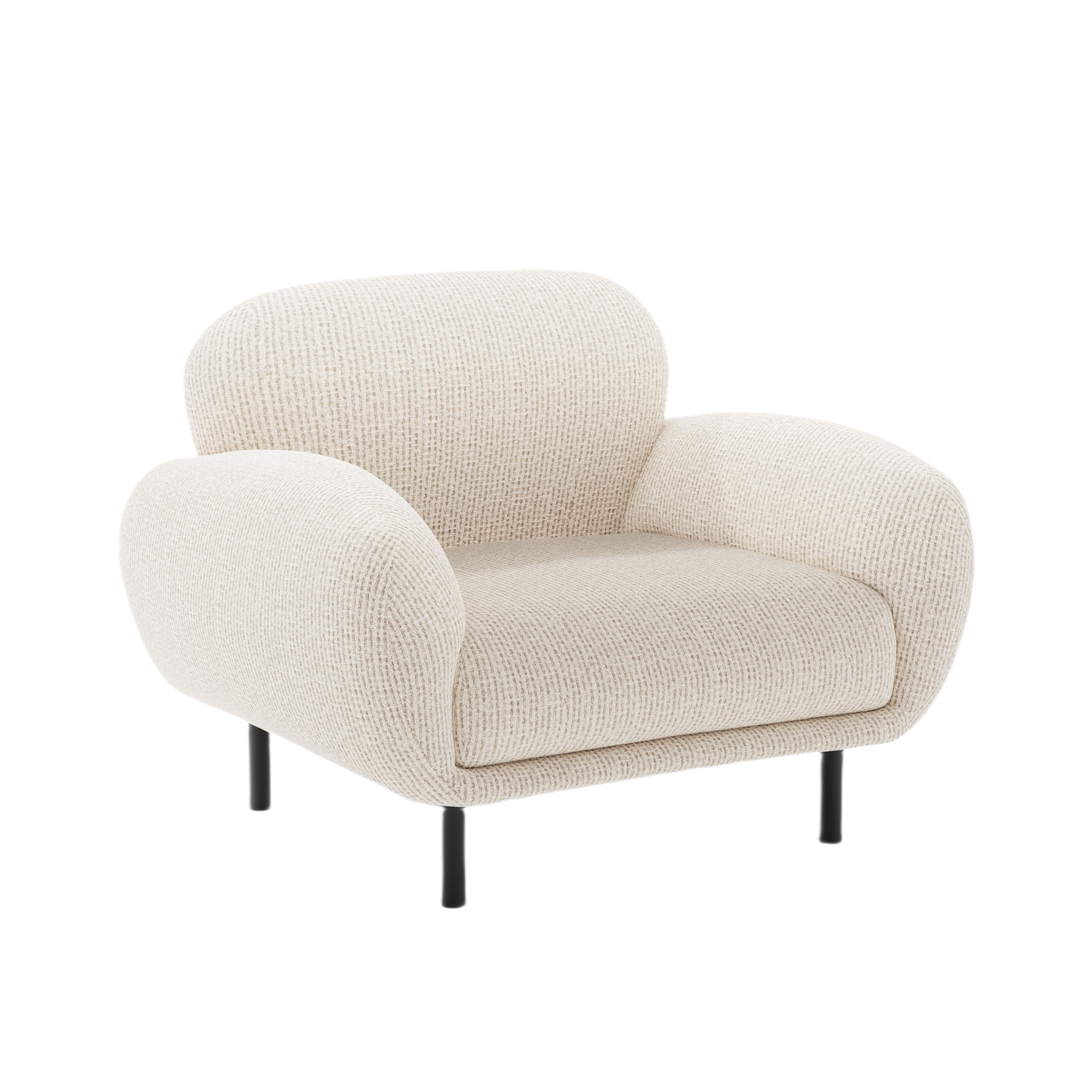 Sessel Poppy ist eine Kombination aus minimalistischem Stil und hohem Komfort. Seine subtile Silhouette und der auf idealer Höhe platzierte Sitz machen ihn sowohl in einem geräumigen Wohnzimmer als auch in einem kleineren Raum perfekt einsetzbar. Die glatten Rundungen und sanften Linien verleihen ihm einen modernen, einladenden Charakter, während die elastische Füllung ein stabiles, aber weiches Rückenteil garantiert.
