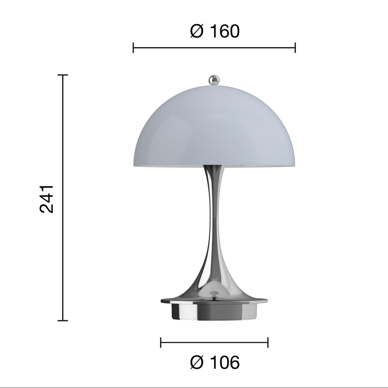 Lampa przenośna PANTHELLA 160 szaroniebieski opal z chromowaną podstawą