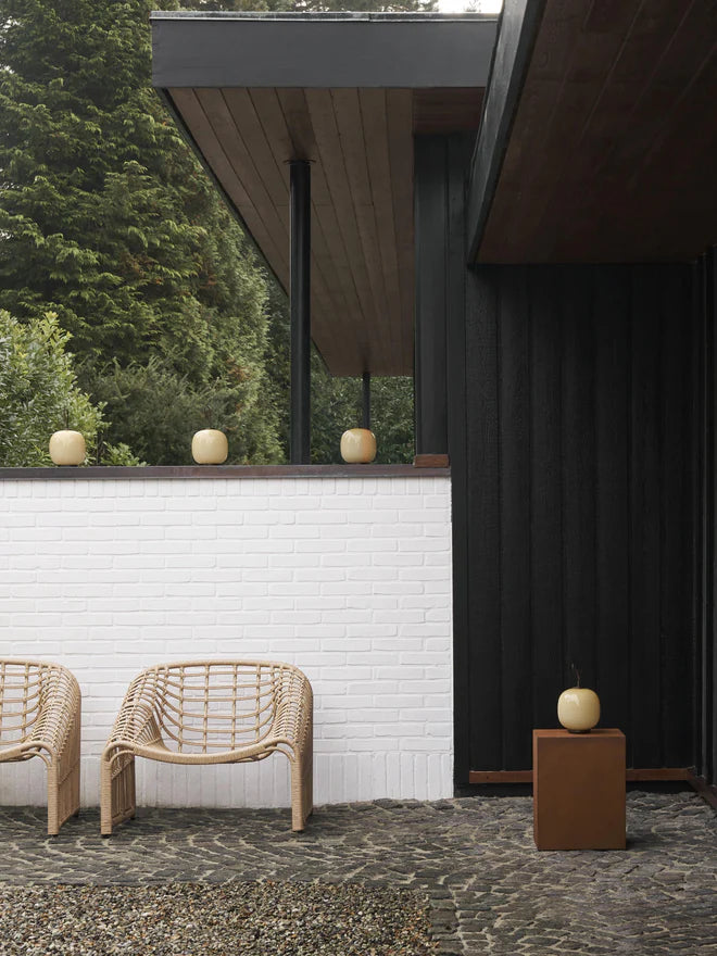 Tragbare Lampe VL 45 ist eine moderne Interpretation des klassischen Designs von Vilhelm Lauritzen aus den 40er Jahren, das ursprünglich für das Gebäude des dänischen Rundfunks Radiohuset in Kopenhagen entworfen wurde. Die zeitgenössische tragbare Version bewahrt das elegante, zeitlose Aussehen des Originals und bietet gleichzeitig die Freiheit der Nutzung – sowohl drinnen als auch draußen. Hergestellt aus handgeblasenem opalem Glas und veredelt mit Details aus Messing und natürlichem Leder, tragbare Lampe VL 45 verbindet traditionelles Handwerk mit moderner Technologie.