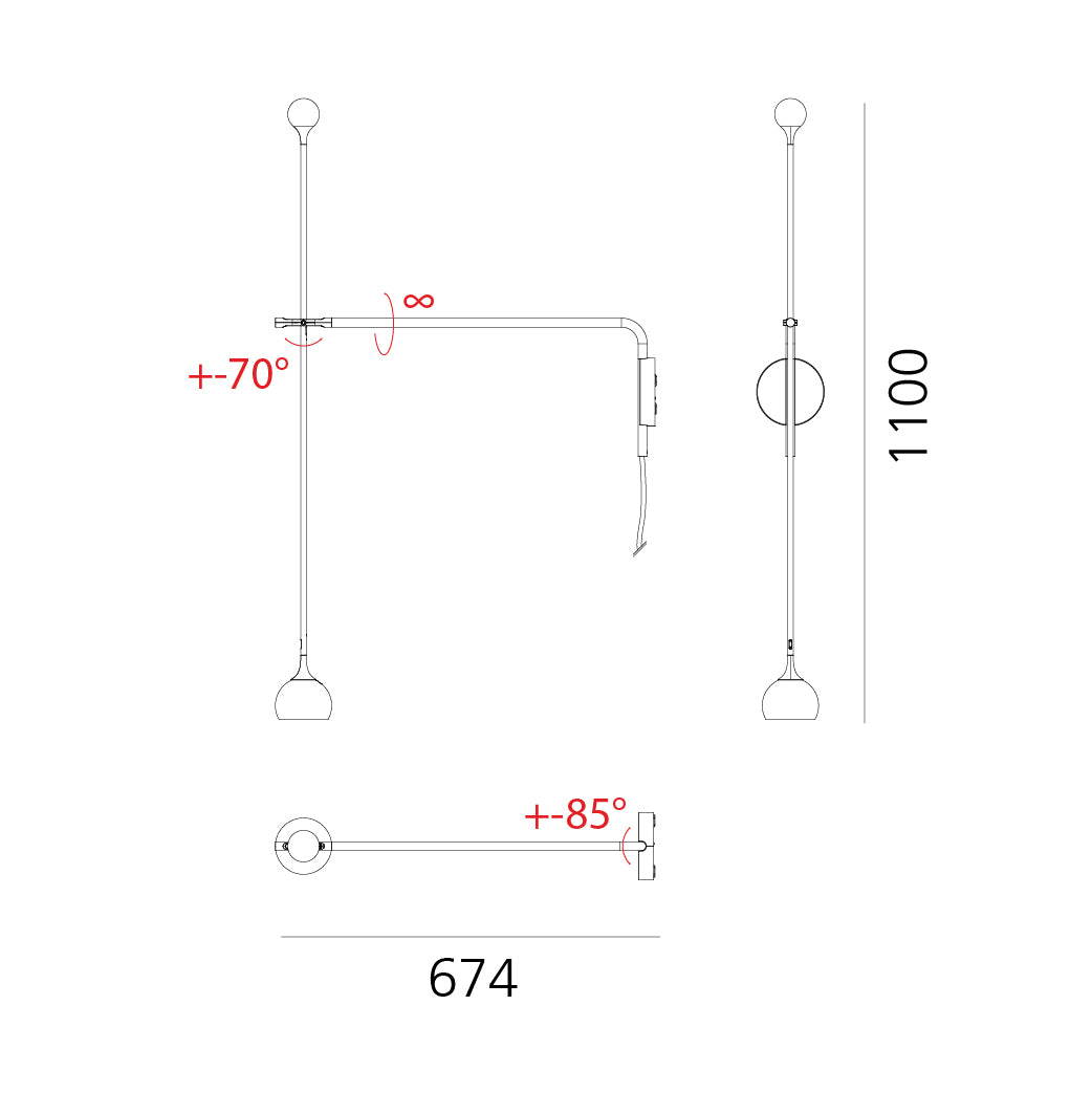 Wandleuchte Ixa L ist in zwei Varianten erhältlich: mit Kabel oder zur festen Montage. Dank des integrierten Touch-Dimmers am Arm kann der Benutzer die Helligkeit ganz einfach an seine Bedürfnisse anpassen. Das warme Licht (3000K), der hohe CRI-Wert (90) und das moderne Finish sorgen dafür, dass diese Beleuchtung sowohl stilistisch als auch technologisch höchsten Ansprüchen gerecht wird.