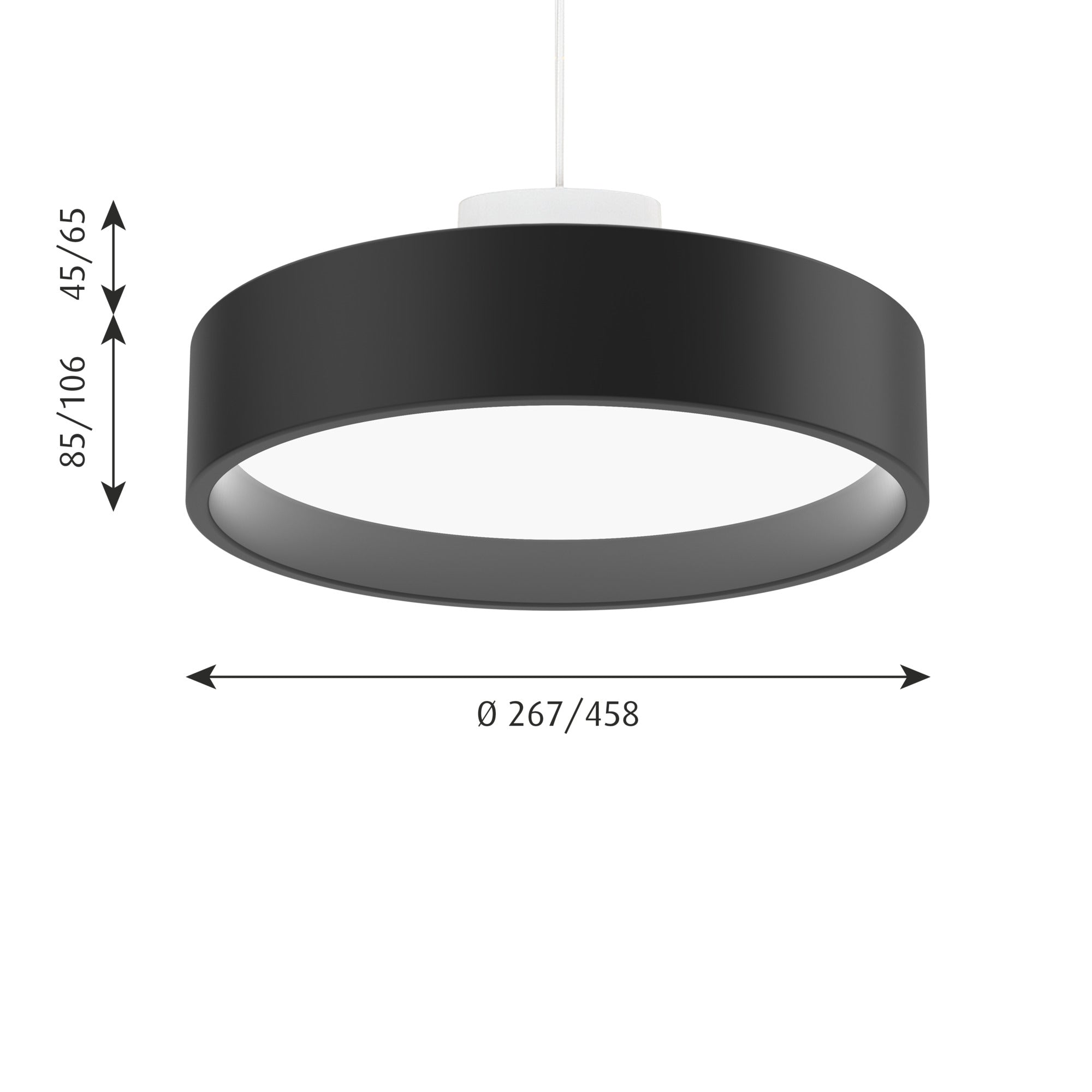 Pendelleuchte LP Circle ist eine moderne Beleuchtungslösung, entworfen vom dänischen Studio KHR Arkitekter. Ihre Form ist inspiriert vom Design der Ørestad School OreLED und wurde geschaffen, um subtil mit der Architektur des Innenraums zu harmonieren. Der charakteristische, abgerundete Ring verleiht der Leuchte einen einzigartigen Charakter, und der sanfte Neigungswinkel der inneren Kante (5°) sorgt dafür, dass die Lampe weiches, diffuses Licht mit einem dekorativen Übergangseffekt ausstrahlt.