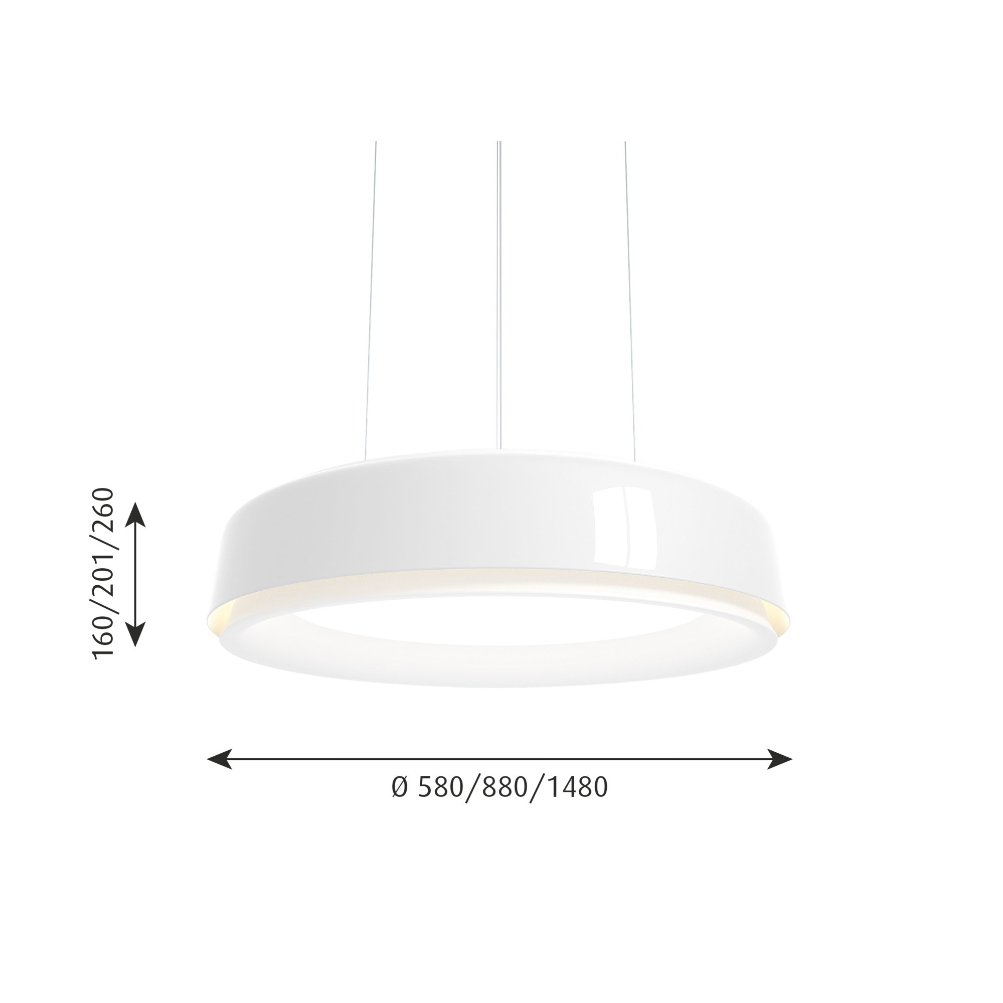 Die Pendelleuchte LP Grand ist ein eleganter Vorschlag, entworfen von Christian Flindt für die Marke Louis Poulsen. Das Design vereint eine minimalistische Form mit hervorragender Lichtqualität – die ringförmige Konstruktion lenkt das Licht nach unten und reflektiert es nach oben, wodurch ein harmonisches Gleichgewicht zwischen Funktionalität und Ästhetik entsteht. Dadurch eignet sich die Lampe perfekt für großzügige Innenräume, in denen die Beleuchtung die Architektur betonen und eine Atmosphäre schaffen soll, ohne zu blenden.