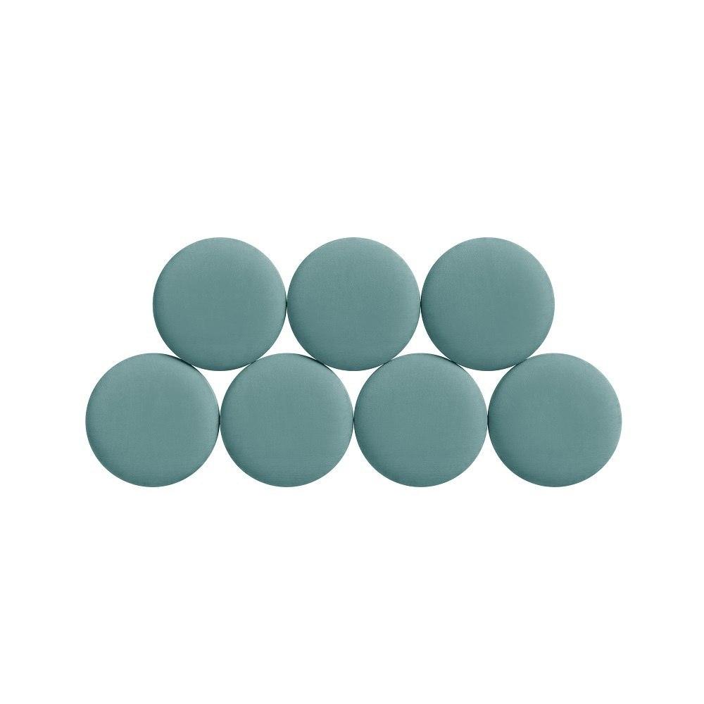 Das Kopfteil besteht aus einzelnen runden Panels, die in jeder Menge miteinander platziert werden können.
