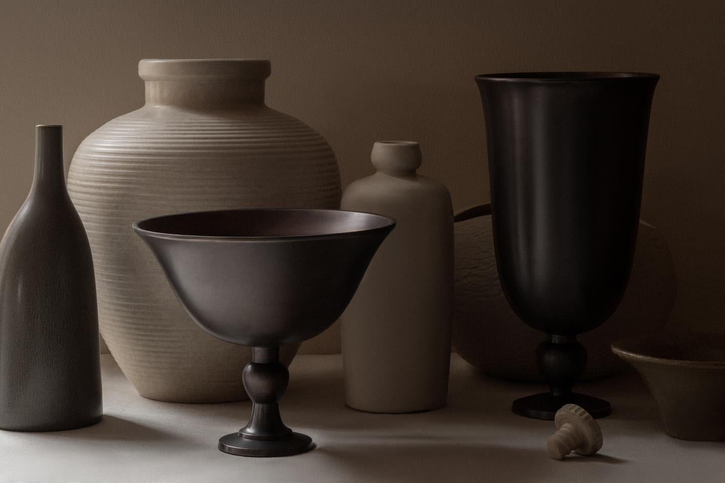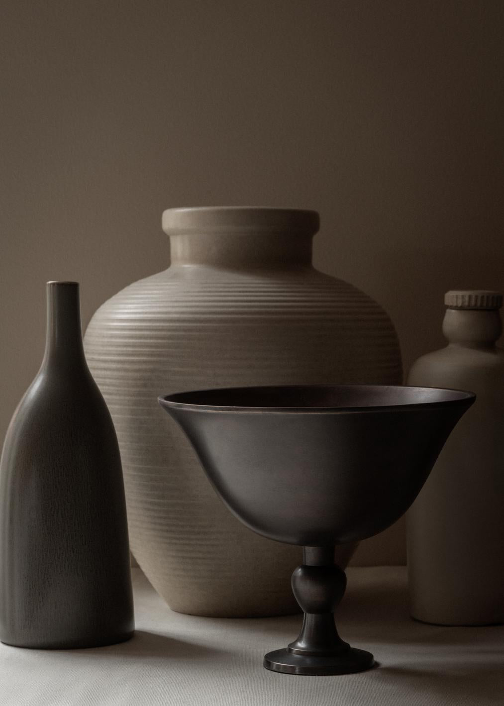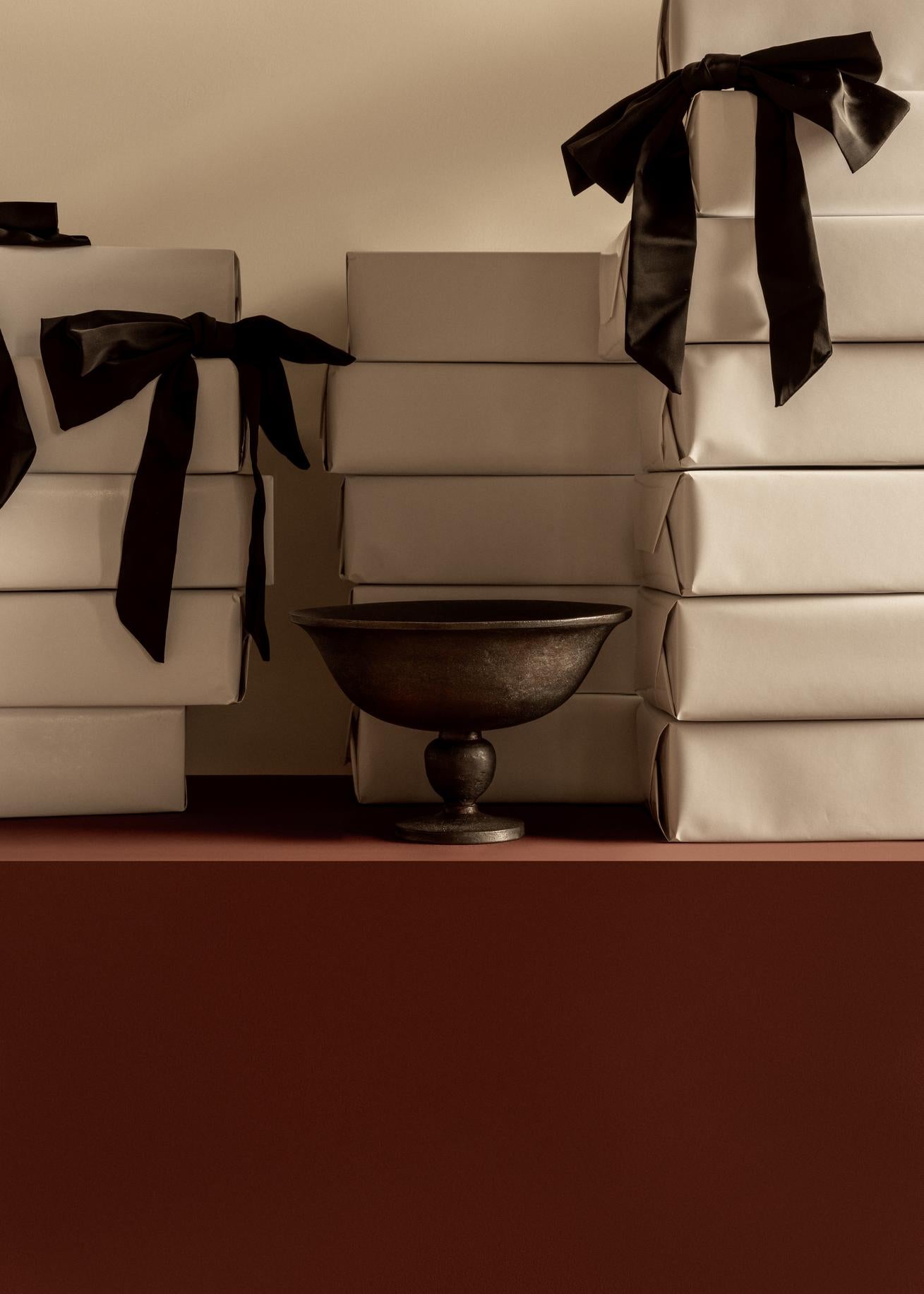 Wykonana z aluminium z eleganckim, postarzanym wykończeniem, misa Pavot stanowi współczesny hołd dla antycznego rzemiosła. Jej forma harmonijnie łączy klasyczne proporcje z nowoczesną prostotą, tworząc wyjątkowy przedmiot o ponadczasowym charakterze. Podstawa inspirowana jest organicznym kształtem główki maku, co nadaje całości subtelny, naturalny akcent.