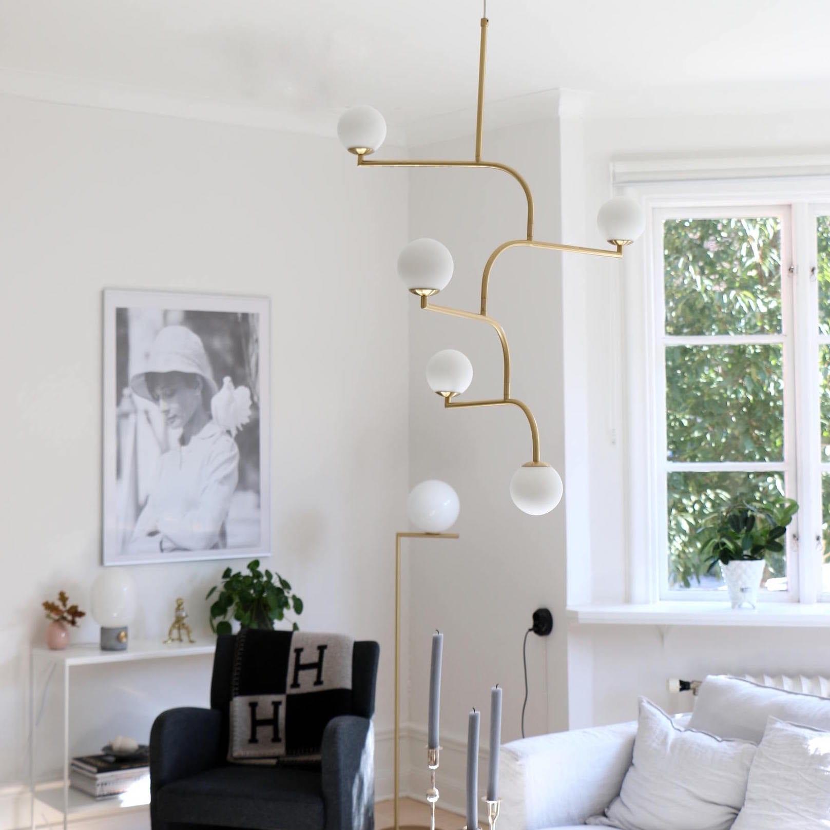 Mobil Grand ist eine Lampe, die Funktionalität mit künstlerischem Ausdruck verbindet. Sie fügt sich hervorragend in loftartige Räume ein, aber auch in moderne und minimalistische Innenräume, und bringt eine Prise Geometrie und Eleganz mit sich. Die milchigen Schirme sorgen für angenehmes, diffuses Licht, und das Gesamtbild wirkt sowohl über dem Esstisch als auch im Wohnzimmer oder in gewerblichen Räumen gleichermaßen spektakulär.