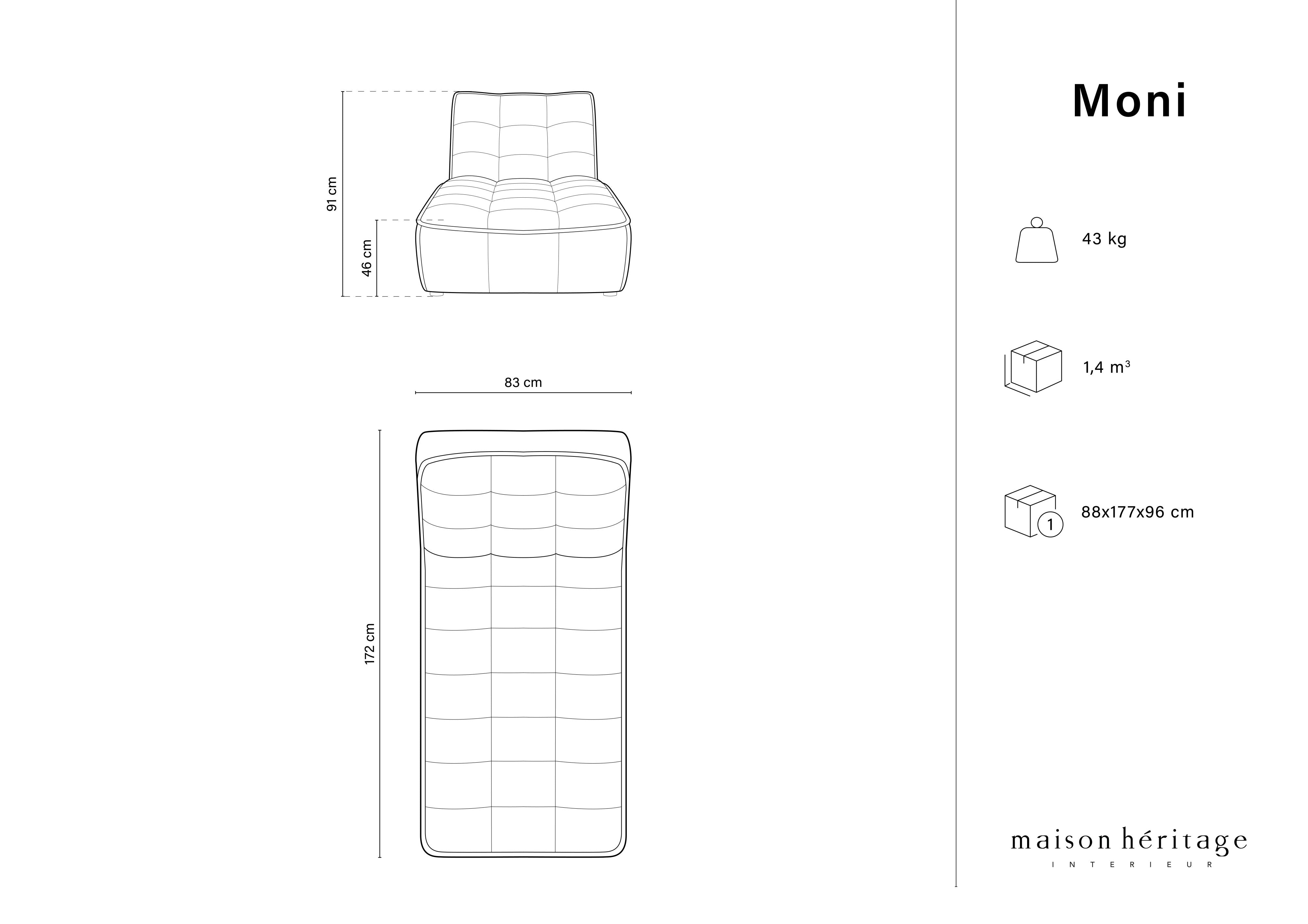 Polsterung aus strukturellem Stoff, dessen fein gewebte Struktur Samt mit einer heterogenen Oberfläche ähnelt, ist angenehm und extrem langlebig. Ergonomische Formen gewährleisten kostenlose Unterstützung. Die Moni -Kollektion umfasst mehrere Kombinationen von Sofas und Ecken sowie Elemente wie Sessel, Chaise und Poufs.