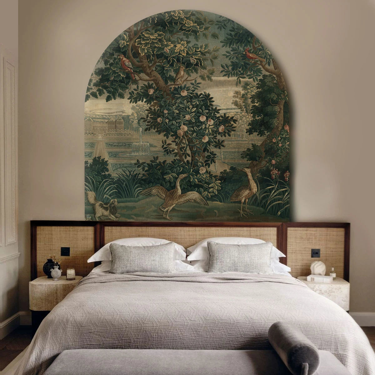 Bogenförmiges Wandbild Vintage Garden Arras fügt sich perfekt in moderne sowie traditionelle Arrangements ein und verleiht ihnen Eleganz und einen Hauch von Vintage-Charme. Es eignet sich hervorragend für das Wohnzimmer, das Schlafzimmer, das Arbeitszimmer oder stilvolle Entspannungsräume und schafft eine gemütliche und inspirierende Umgebung. Dies ist die ideale Wahl für Menschen, die Dekorationen schätzen, die Klassik, Natur und zeitloses Design vereinen.