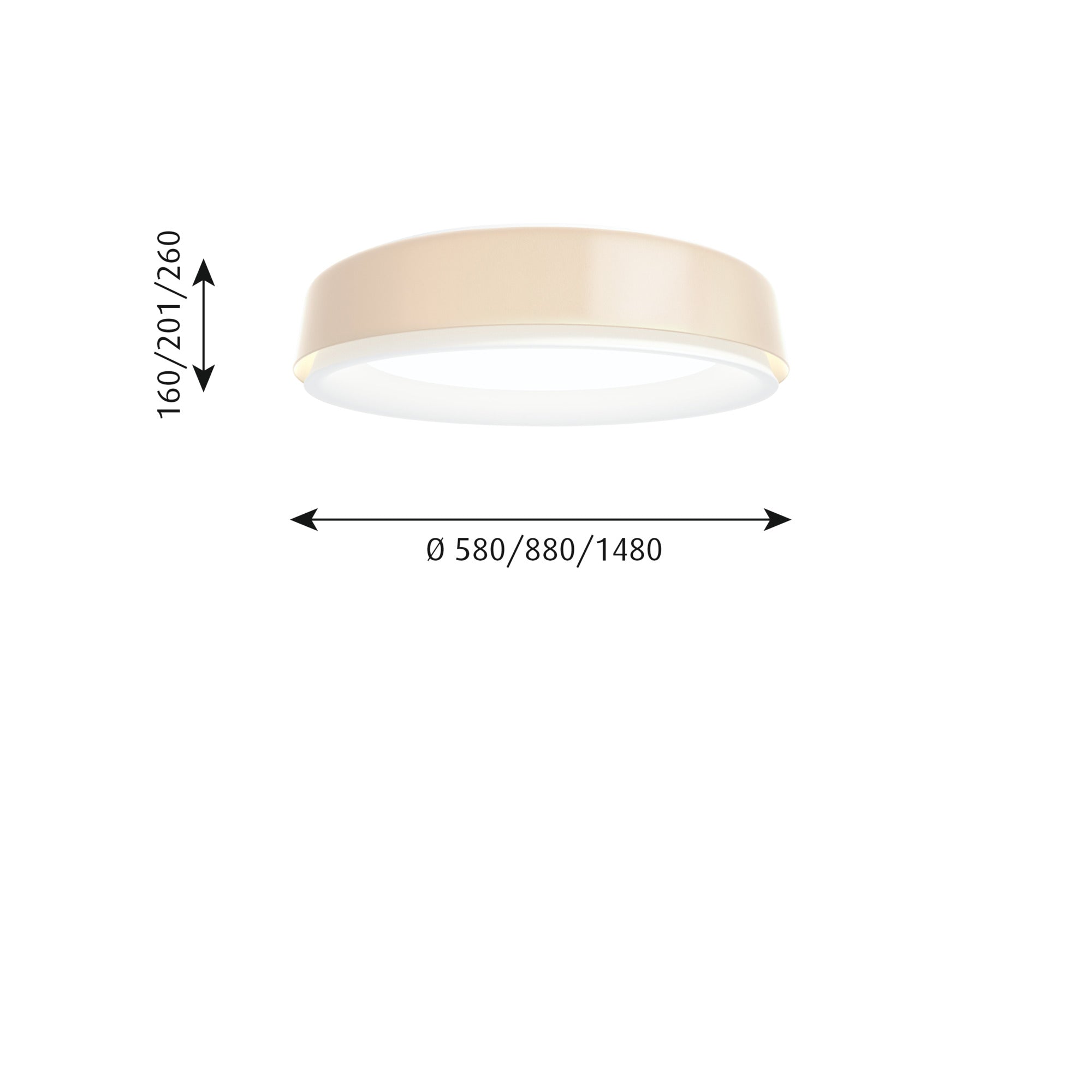 Wariant o średnicy Ø320 wyróżnia się możliwością montażu zarówno na suficie, jak i na ścianie, co pozwala tworzyć spójne, dekoracyjne kompozycje świetlne. Pozostałe rozmiary (Ø580, Ø880, Ø1480) przeznaczone są do montażu tylko na suficie.
