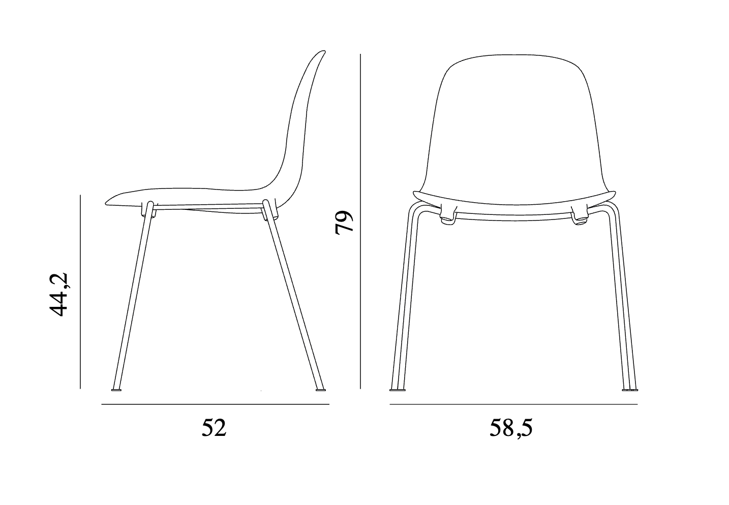 Um dieses nahtlose, integrierte Erscheinungsbild zu erreichen, wurde eine innovative Lösung entwickelt, um den Sitz mit den Beinen zu verbinden. Der gebildete Plastiksitz und der Rahmen aus Eiche, Walnuss oder Stahl sind mit einem einzigartigen Tassensystem natürlich in den Sitz integriert. Plastiksitz und Holz- oder Stahlbeine kombinieren auf elegante Weise und betonen die hohe Qualität des Projekts.