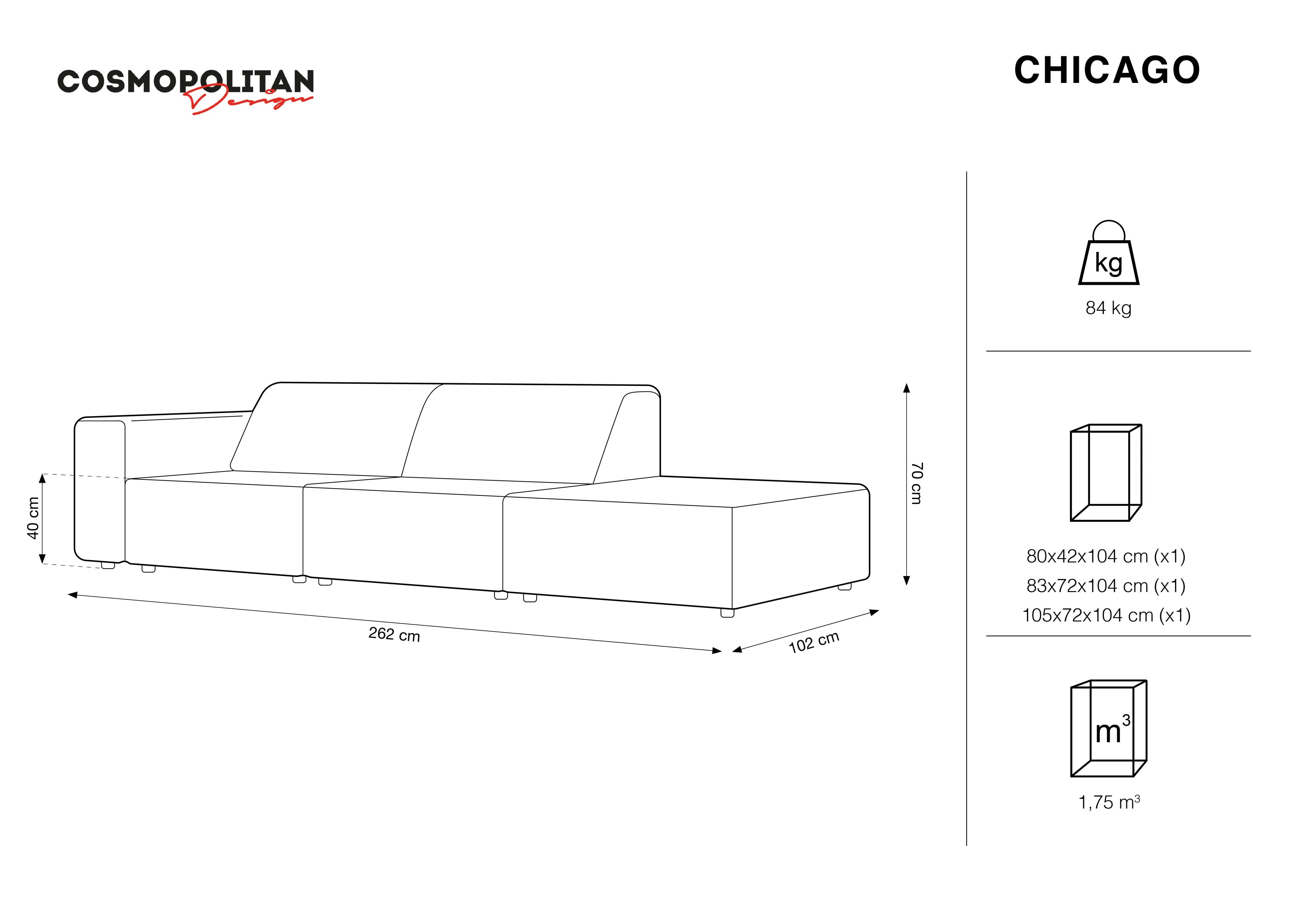 Rechtsseitiger Samtsofa 3-Person Chicago Dunkelgrau