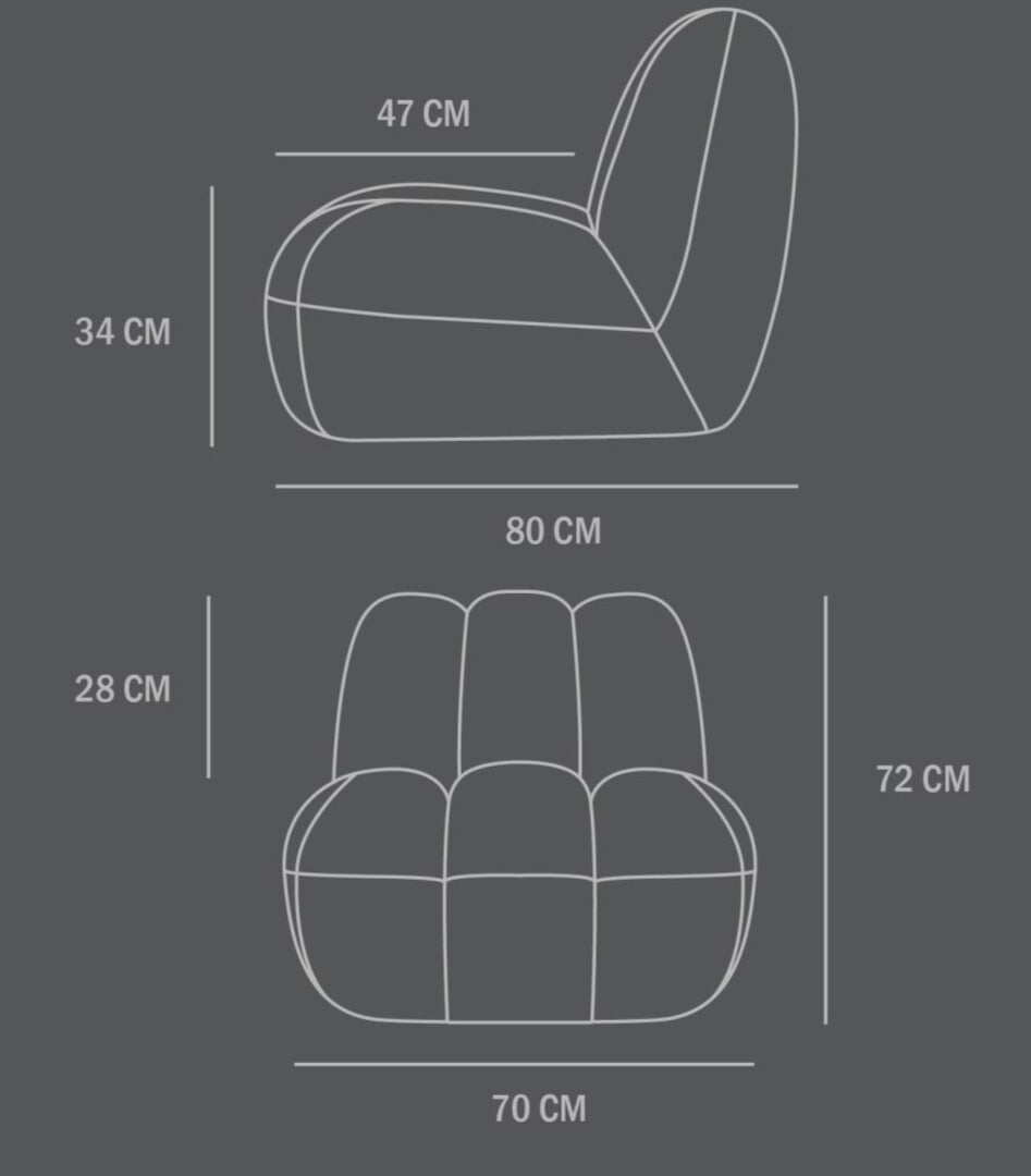Toe ist ein Sessel , der eine Hommage an das futuristische Design der Siebzigerjahre und die Ästhetik des Weltraumzeitalters darstellt und eine unverwechselbare Form mit hohem Sitzkomfort verbindet. Das Design zeichnet sich durch eine skulpturale Formgebung des Möbels aus und die dicke, geriffelte Polsterung, die von der Sitzfläche bis zur Rückenlehne verläuft, erzeugt eine geradlinige und voluminöse Silhouette. Die offene Form des Sessels ermöglicht eine entspannte und natürliche Sitzposition, während die spezielle Kombination verschiedener Schaumstoffe für höchsten Komfort sorgt.