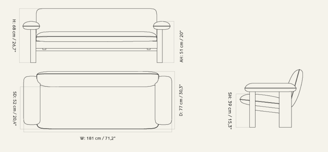 Sofa Brasilia ist eine Verbindung skandinavischer Eleganz mit brasilianischem Modernismus und schafft ein einzigartiges Möbelstück mit zeitlosem Charakter. Entworfen von dem Duo Anderssen & Voll, zeichnet sie sich durch ihr niedriges Profil, abgerundete Linien und eine massive, hölzerne Konstruktion mit charakteristischen vorderen Beinen aus. Dank der ausgewogenen Proportionen vereint die Sofa Solidität mit visueller Leichtigkeit und bietet gleichzeitig vollen Komfort für die Entspannung.