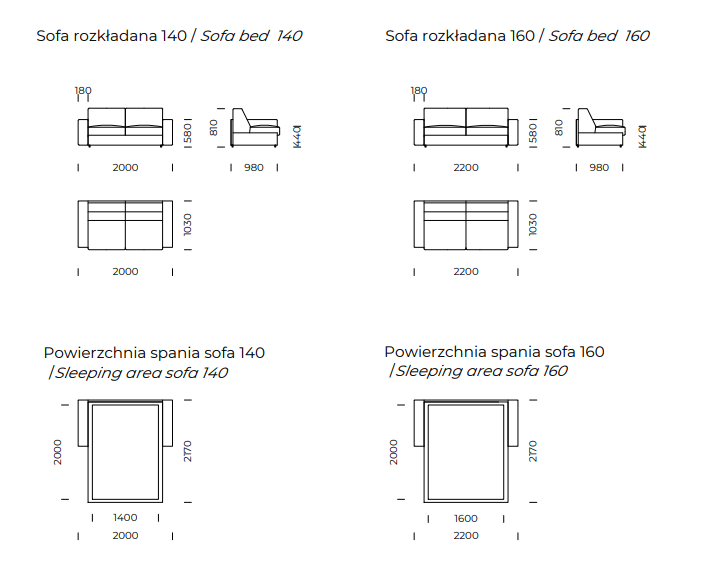 Sofa mit Schlaf-Funktion ISMA gepolstert
