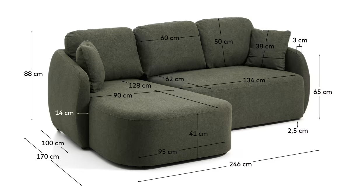Linksseitiges 3-Sitzer-Sofa mit Schlaffunktion LAIRA in Dunkelgrün