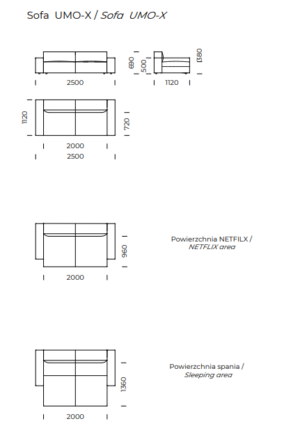 Sofa mit elektrischem Ausziehmechanismus UMO X gepolstert
