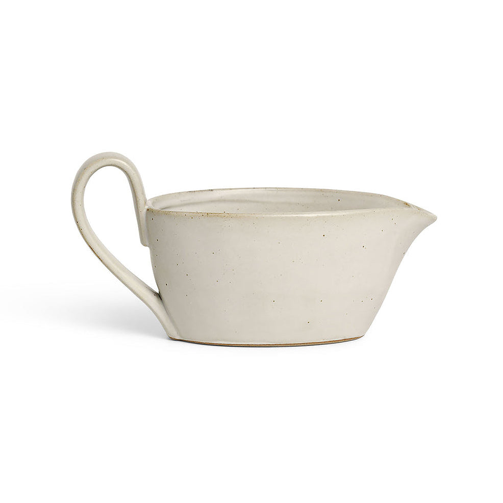 Sosjerka Flow to elegancki element kolekcji Flow, w której nowoczesny design spotyka się z tradycyjnym rzemiosłem. Wykonana z kamionki i pokryta reaktywną glazurą w odcieniu złamanej bieli, zachwyca subtelną nieregularnością i naturalnym wyrazem powierzchni, dzięki czemu każdy egzemplarz jest niepowtarzalny. Jej wydłużony, charakterystyczny uchwyt nadaje formie lekkości i stanowi znak rozpoznawczy całej serii Flow.