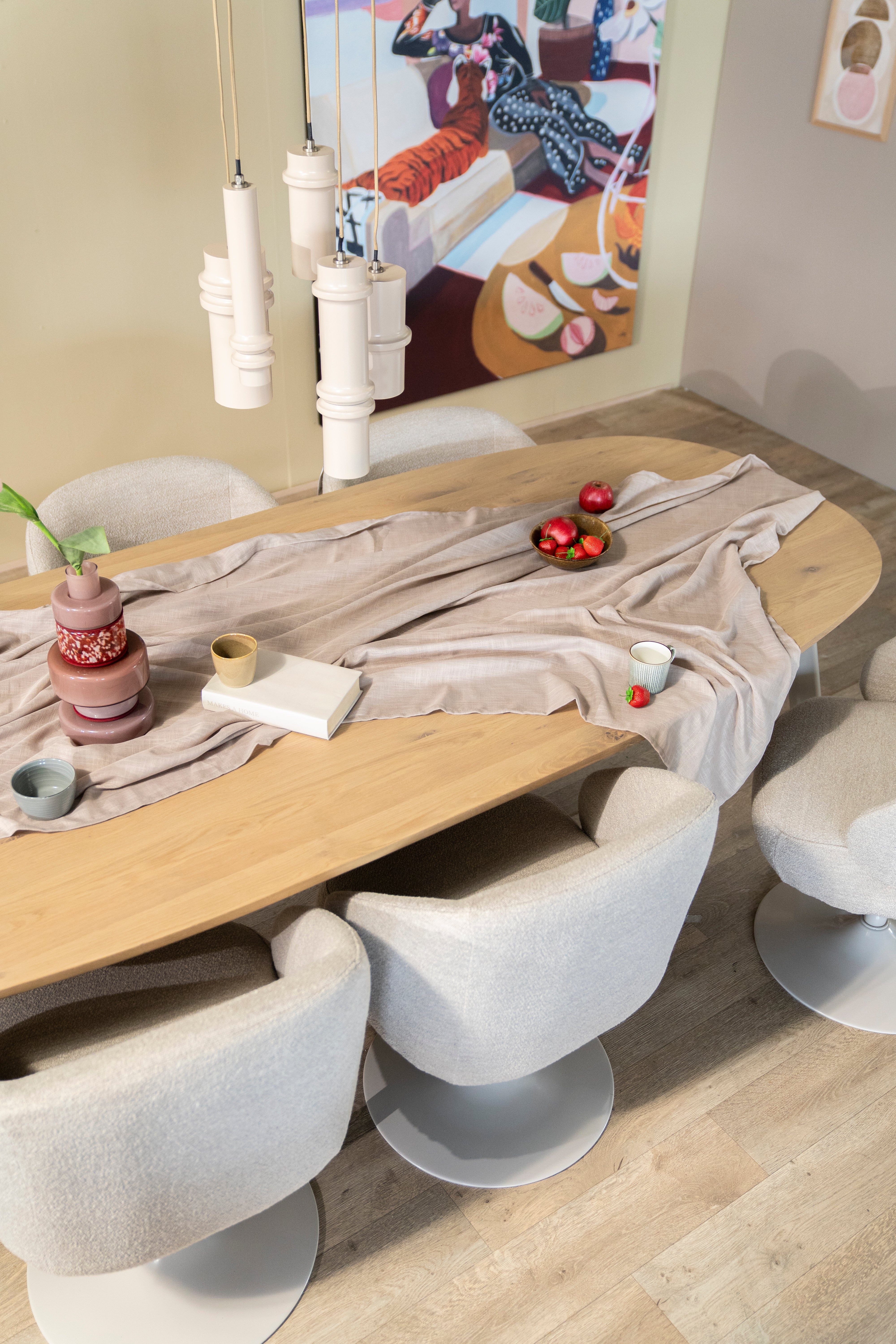 Ovaler Tisch DION aus Eichenholz mit Metallbasis