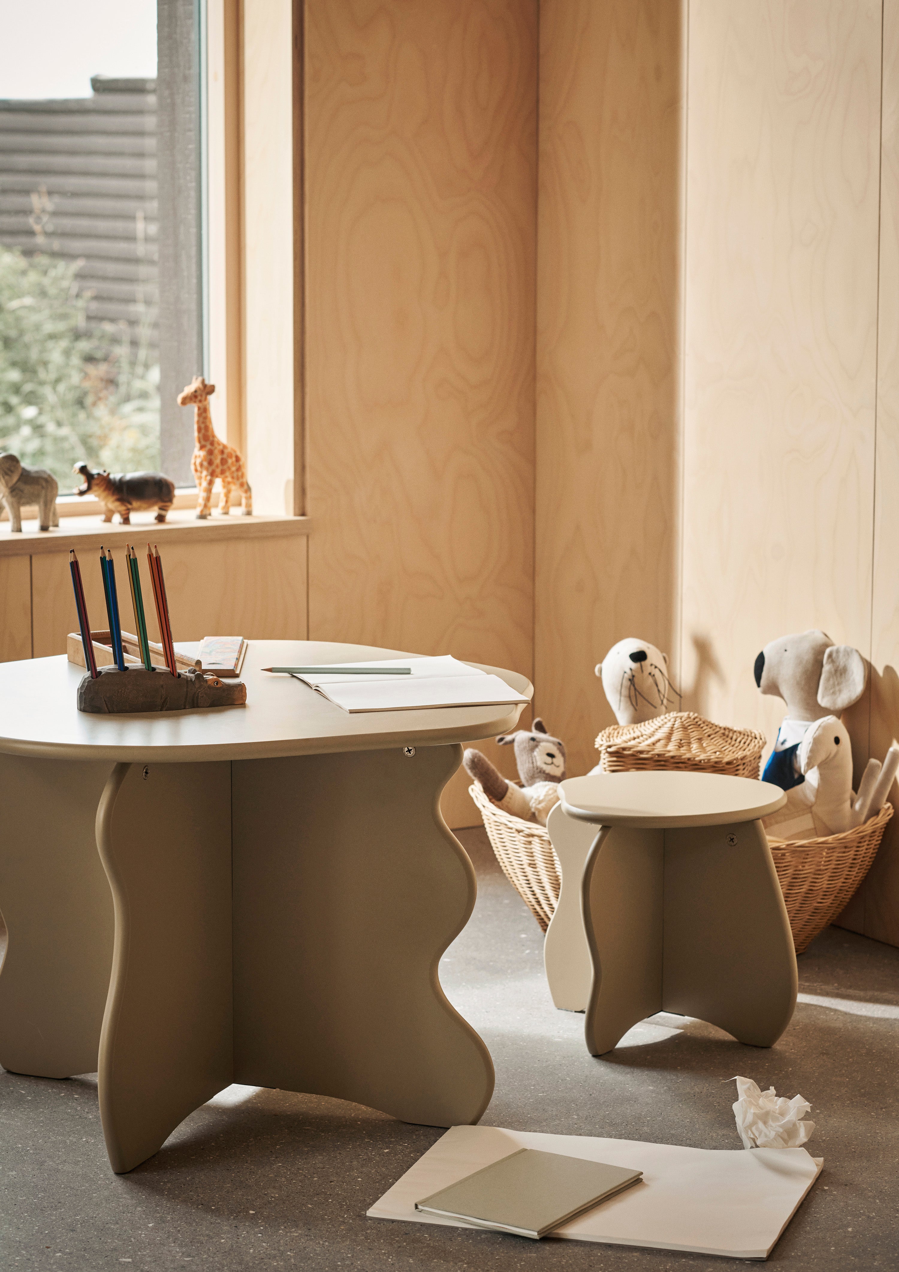 Stolik Slope to uroczy i funkcjonalny element wystroju pokoju dziecięcego, który wprowadza do wnętrza lekkość i fantazyjny charakter. Inspirowany krajobrazem łagodnych wzgórz, zachwyca miękkimi, falującymi liniami, które nadają mu wyjątkowo przyjazny i organiczny wygląd. Wykonany z malowanej płyty MDF z certyfikatem FSC™, stolik łączy estetykę z troską o środowisko, a jego delikatny odcień beżu tworzy ciepłą i przytulną atmosferę sprzyjającą zabawie i nauce.