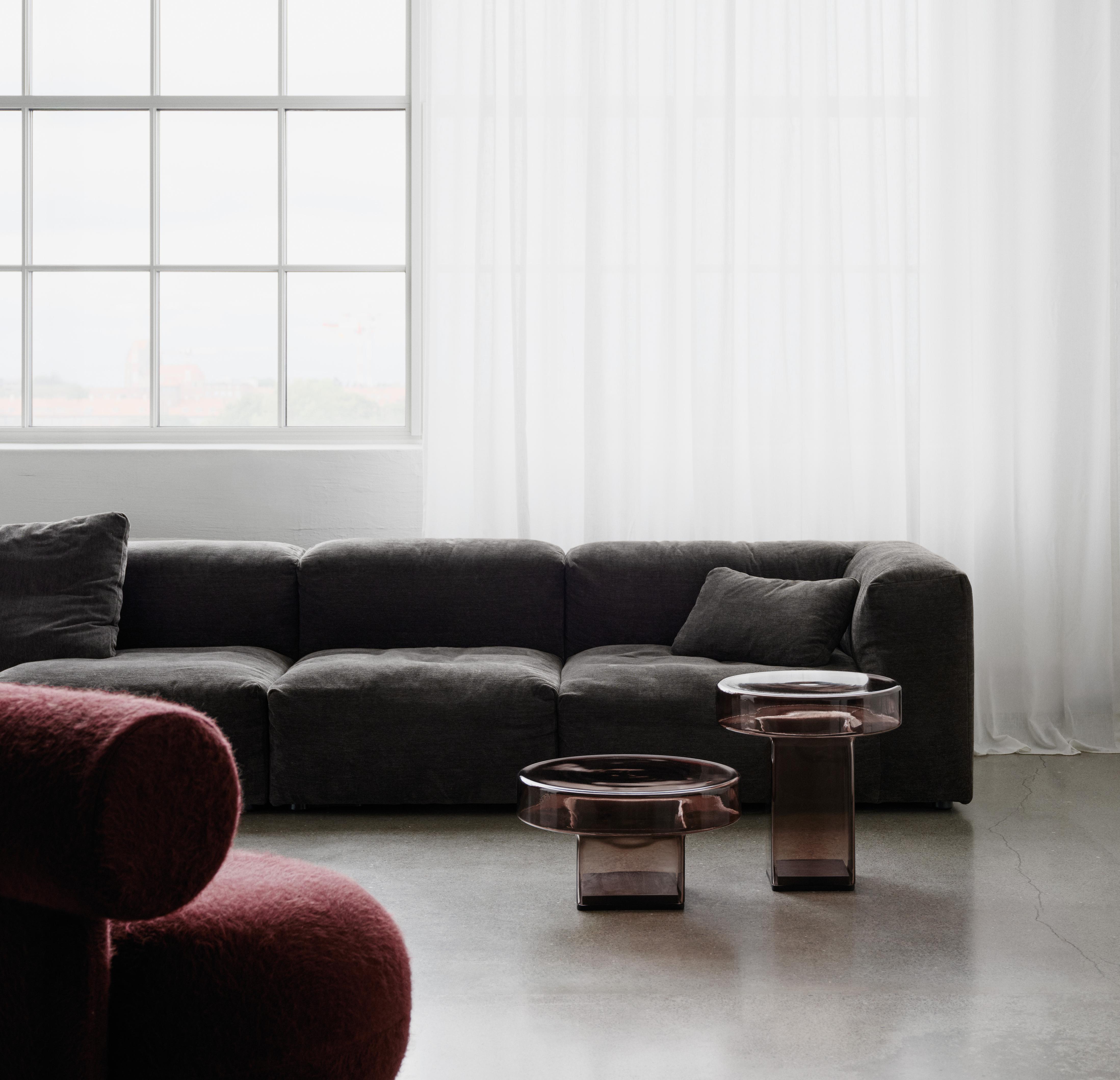 Kaffeetisch Naked ist eine Verbindung von skulpturaler Form und der Zartheit von Glas. Seine verstärkte, runde Tischplatte ruht auf einem massiven, säulenförmigen Fuß und schafft eine mutige, zugleich leichte Konstruktion. Jeder Glas-Kaffeetisch wird aus einem Stück handgeblasenem Glas gefertigt, was ihn zu einem einzigartigen Kunstwerk macht. Der Herstellungsprozess umfasst das Formen von geschmolzenem Glas in einer speziellen Form, das Aufblasen, das Härten und das präzise Schneiden, um perfekte Stabilität zu erreichen.