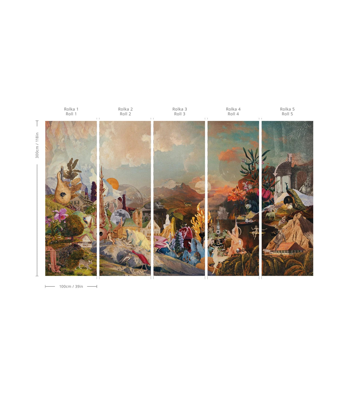 Tapete The Surreal Valley eignet sich perfekt für das Schlafzimmer, das Wohnzimmer, kreative Räume und Ihr Home Office. Es ist ein Vorschlag für diejenigen, die eine außergewöhnliche Atmosphäre, subtile Symbolik und stimmungsvolle Dekorationen schätzen.