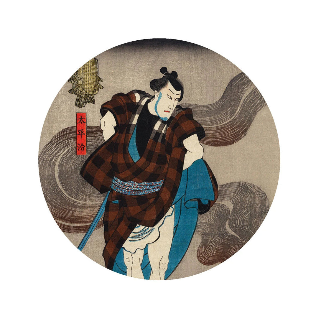Mural w kształcie koła DOTS - SAMURAI SERENITY beige