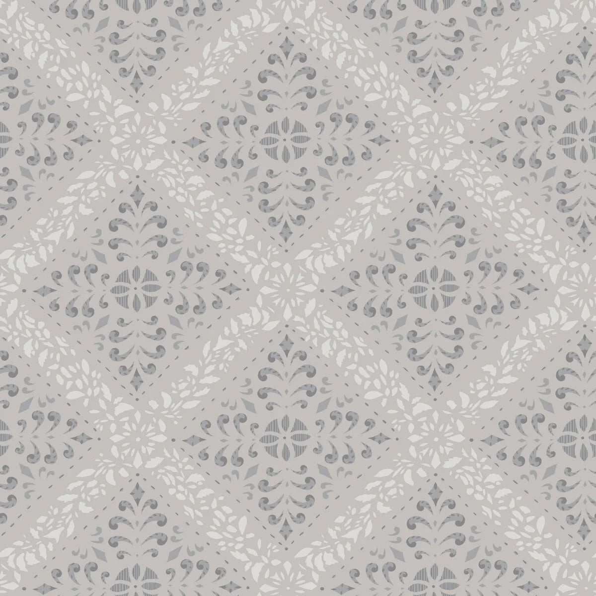 Tapete Nyborg, inspiriert von einem wunderschönen Schablonenmuster aus dem Jahr 1850, vereint drei winterliche Farbtöne und schafft ein bezauberndes Bild, das an einen gefrorenen Wintergarten erinnert, der mit Schnee bedeckt ist. Weiße und graue Motive in verschiedenen Schattierungen, meisterhaft kombiniert mit einem subtilen hellgrauen Hintergrund, verleihen der Tapete eine elegante und raffinierte Ästhetik.