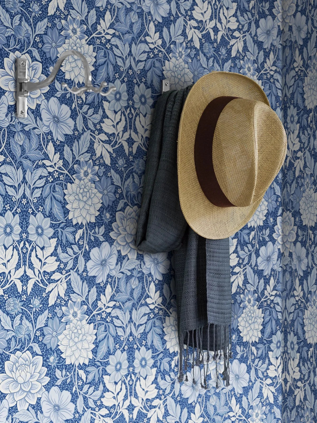 Die Tapete Dahlia Garden fügt sich sowohl in klassische als auch in modernere Arrangements perfekt ein. Ihr ausgewogener, dekorativer Stil macht sie ideal für Flure oder andere repräsentative Räume, in denen Sie eine Atmosphäre von Eleganz und Ruhe schaffen möchten. Es ist eine Tapete, die das Interieur wunderschön ergänzt und einen zeitlosen Hintergrund für Accessoires und Möbel bietet.