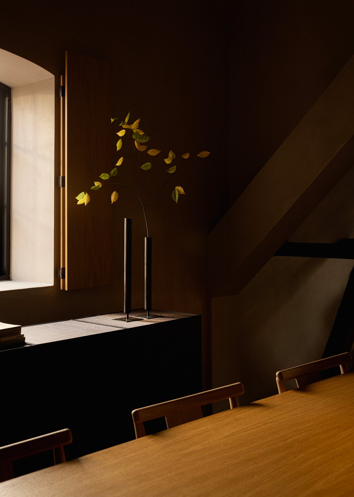 Wazon Stance to przykład doskonałej równowagi między prostotą, elegancją i rzeźbiarską formą. Zainspirowany tradycyjnymi stojakami ekspozycyjnymi, został zaprojektowany tak, by podtrzymywać gałęzie lub kwiaty o długich łodygach, tworząc harmonijną i wyrafinowaną kompozycję. Wykonany z brązowanego mosiądzu, z czasem pięknie patynuje, zyskując unikalny charakter i głębię koloru.