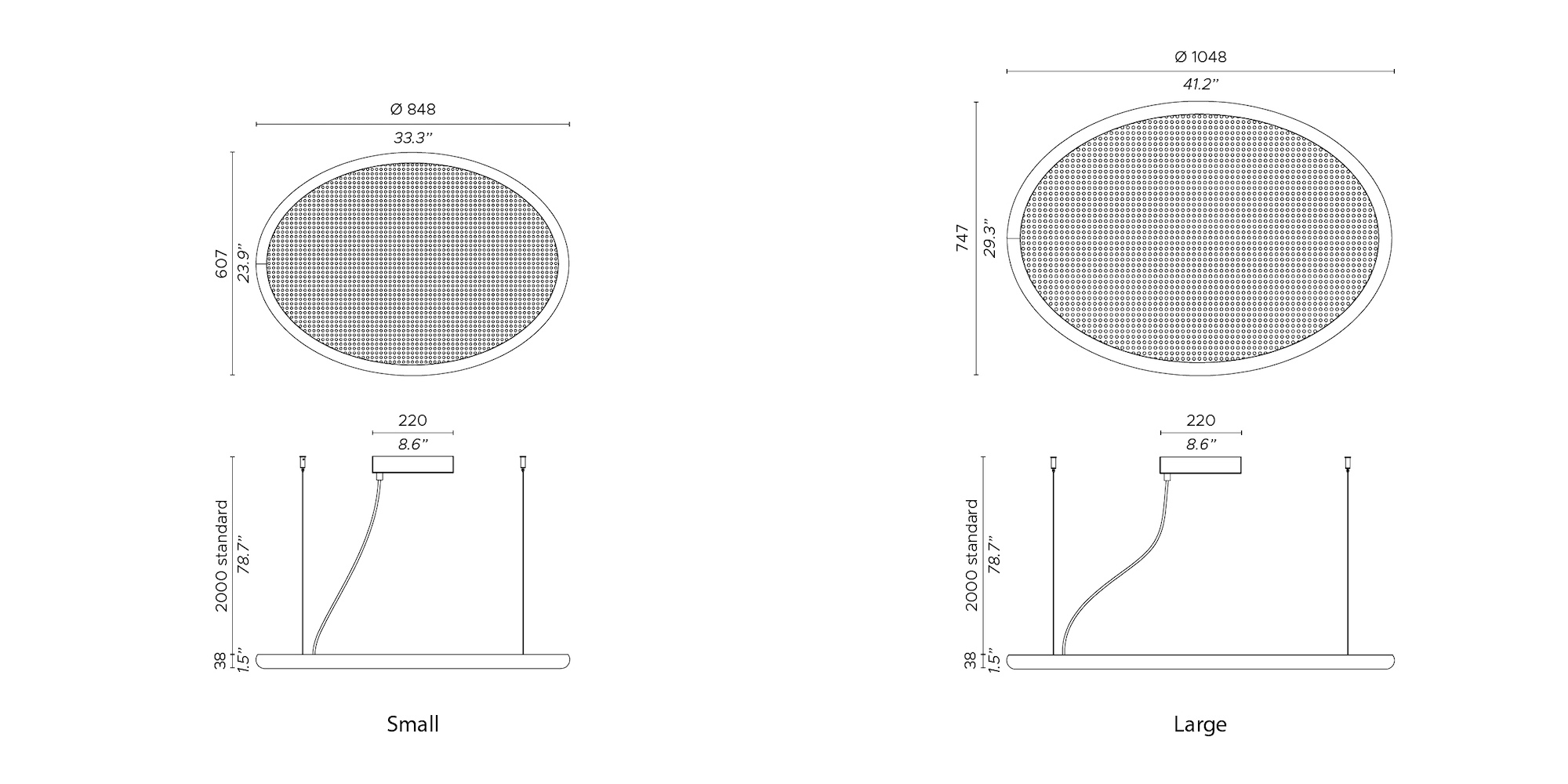 Eine saubere, einfache Linie und ein schwarzes Holz erzeugen einen eleganten Ausdruck, der im Geist des modernen Dekors eingeschrieben ist. Das Licht kommt gleichmäßig und leise heraus. Die Idee der Leichtigkeit wird durch ein Material ausgedrückt, das seine heutige und Eleganz zu unseren Innenräumen erklärt. LED -Panel Es kann mit weißer Baumwolle, Wiener Stroh oder Stoff mit Marmorabdruck bedeckt sein, die in einem schwarzen, lackierten Oval gesetzt werden.