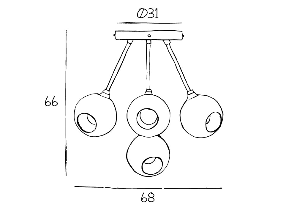 Materiały: Ręcznie dmuchane i malowane szkło, żelazo w kolorze złotym