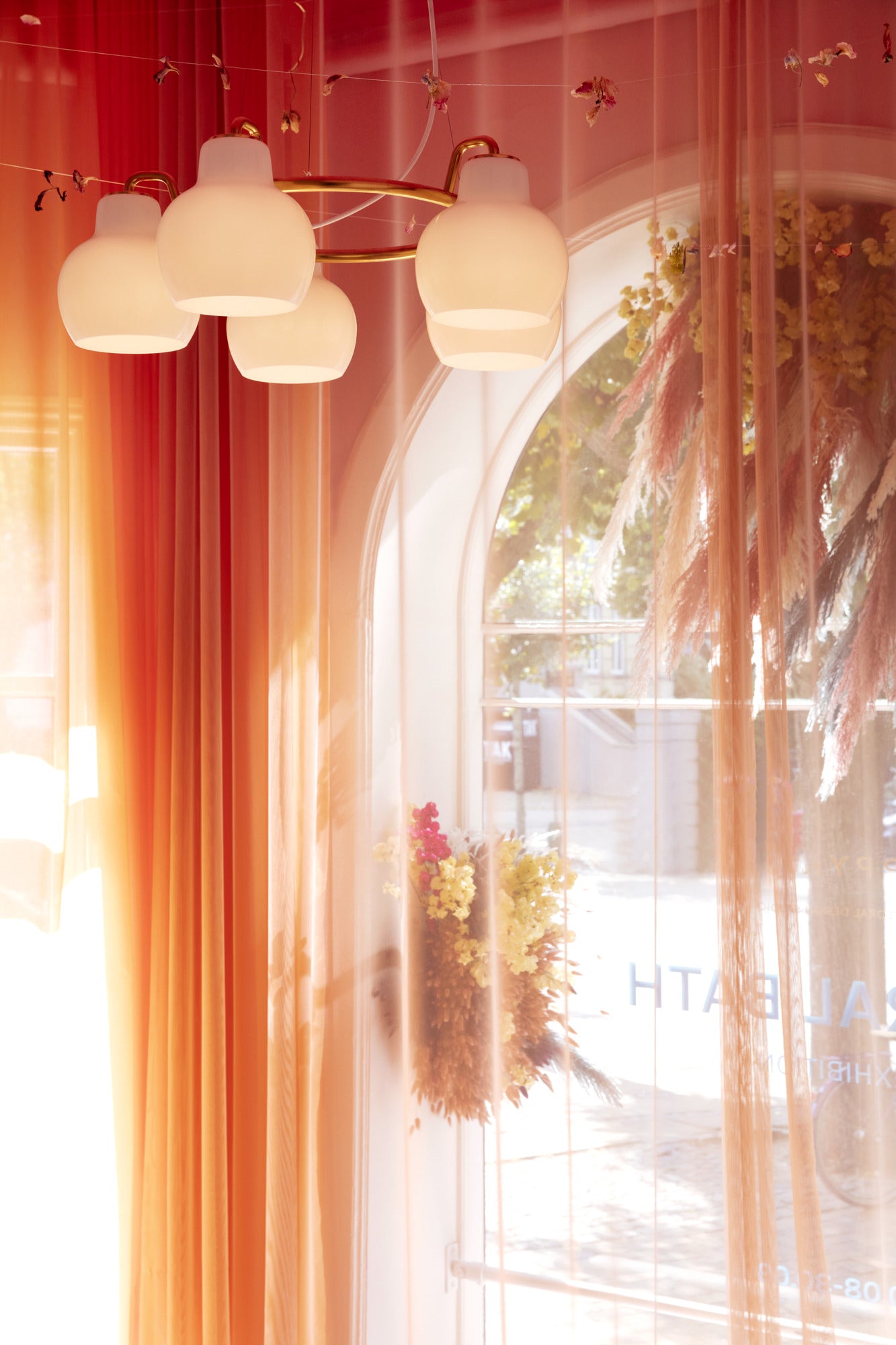 Die Pendelleuchte strahlt Licht hauptsächlich nach unten aus. Das mundgeblasene opalglas sorgt für eine weiche, gleichmäßige und angenehme Beleuchtung des Raumes. Die edle Kombination aus natürlichem Messing und opalisiertem Glas verleiht ihr einen eleganten, zeitlosen Charakter, der klassische und moderne Innenräume perfekt ergänzt.