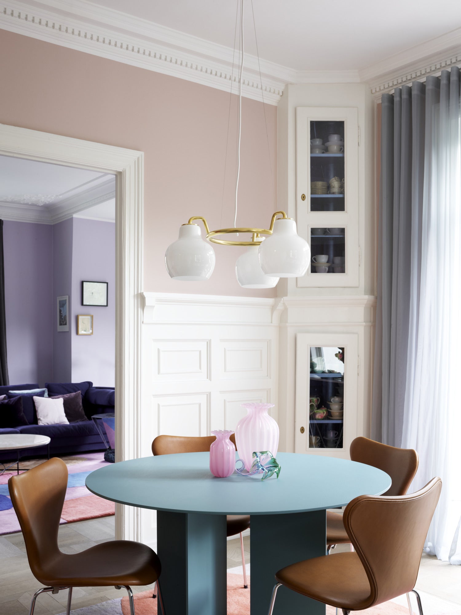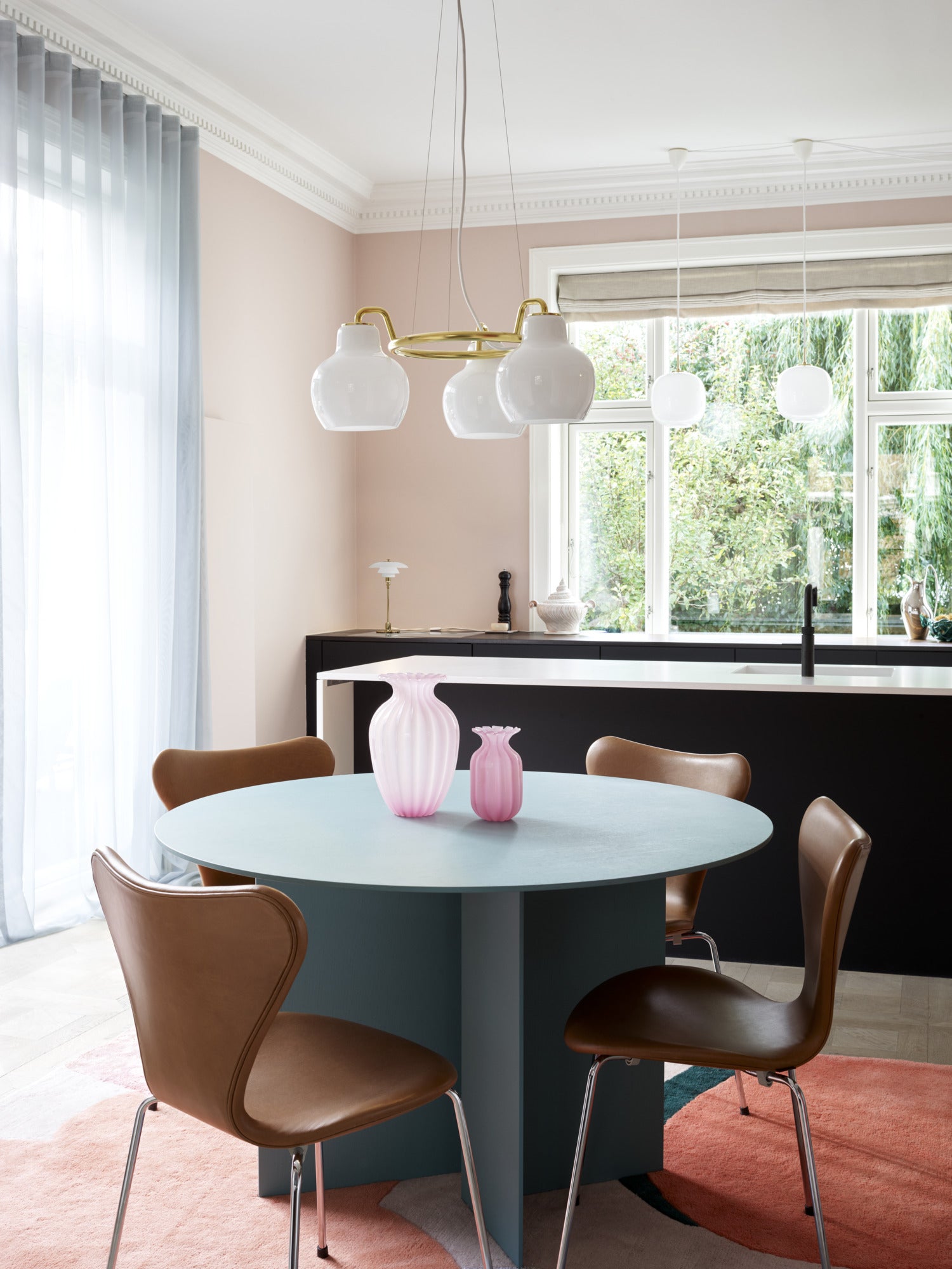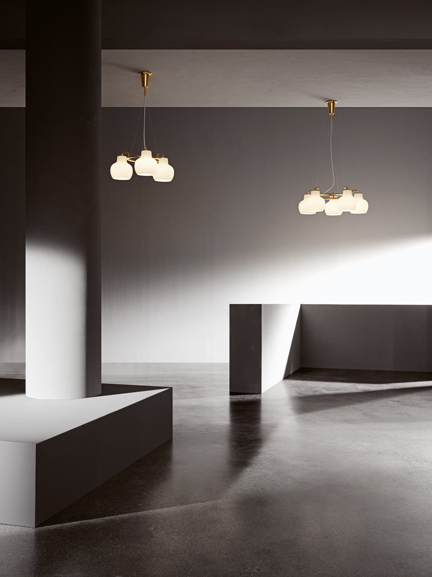 Der Kronleuchter VL Ring Crown ist ein ikonisches Design des dänischen Architekten Vilhelm Lauritzen aus den 40er Jahren des 20. Jahrhunderts, ursprünglich für das Gebäude des Dänischen Rundfunks in Kopenhagen entworfen. Obwohl die ursprüngliche Version der Lampe dort nicht verwendet wurde, entstand bald auf der Grundlage der originalen Zeichnungen ein Modell, das in der Innenarchitektur Anerkennung fand – unter anderem durch die Verwendung des Designers Finn Juhl im Jahr 1947 in den Innenräumen der Porzellanmanufaktur Bing & Grøndahl in Kopenhagen. Im Jahr 2019 wurde der Kronleuchter VL Ring Crown erneut in Produktion genommen, wobei er den ursprünglichen Materialien und Details treu blieb – unlackiertem, poliertem Messing und dreischichtigem, mundgeblasenem opalisiertem Glas.
