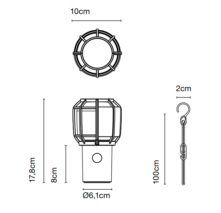 Outside, its design is protected by a grille that rotates the light source. The small weight of the Chispa lamp allows you to take it to the car, for wandering, camping, on boat trips, so it is perfect for traveling minds. It also contains an accessory for suspending and illuminating dining tables and gardens.